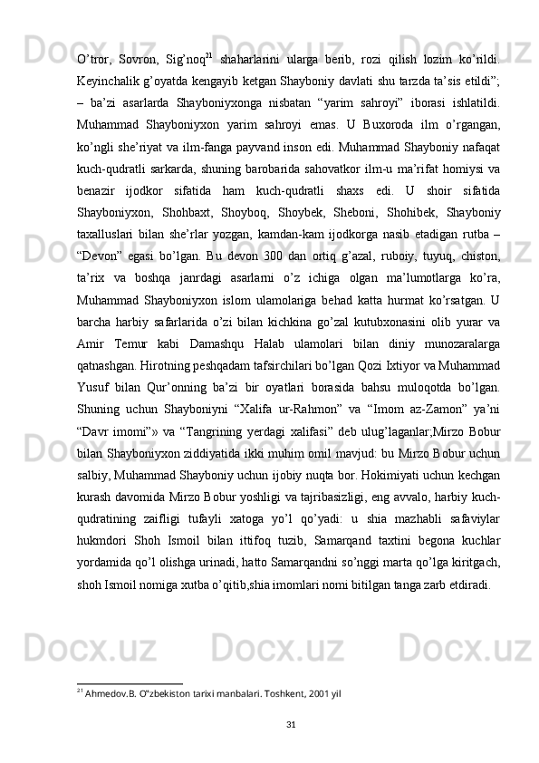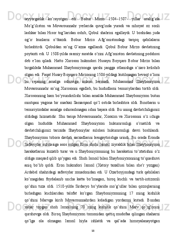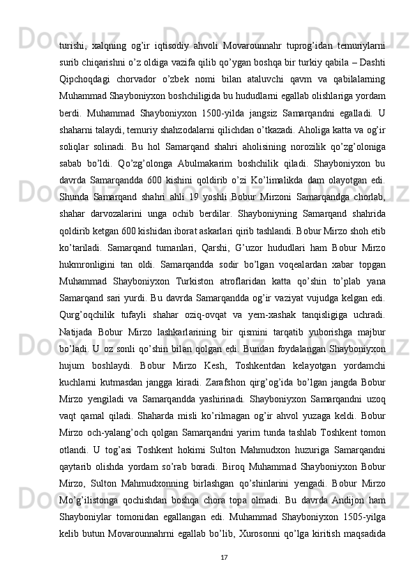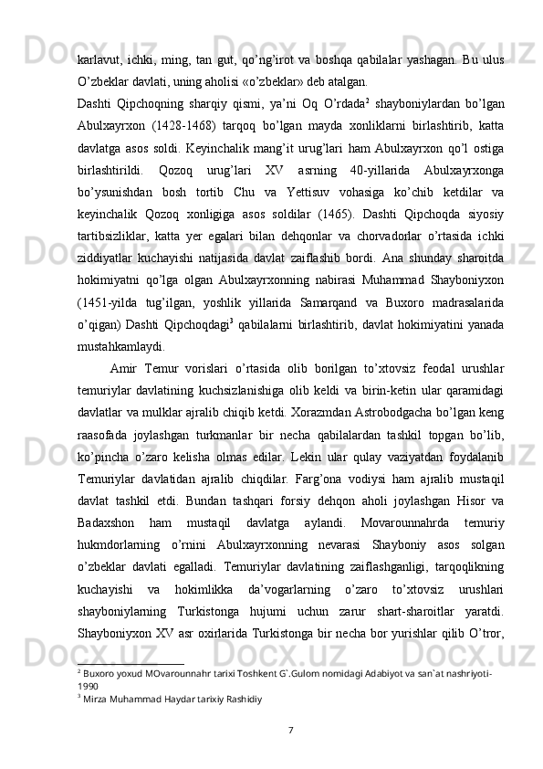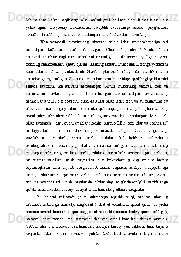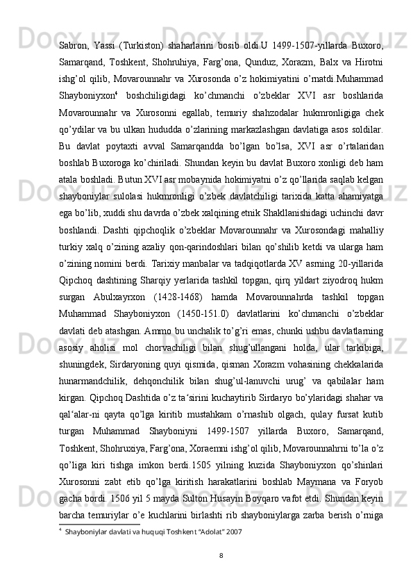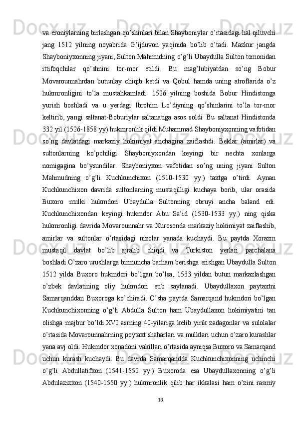 Shayboniylar davlatida qo’shin tuzilishi va harbiy ish