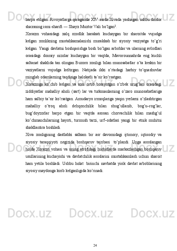 Shayboniylar hukmronligi davrida Xiva xonligi