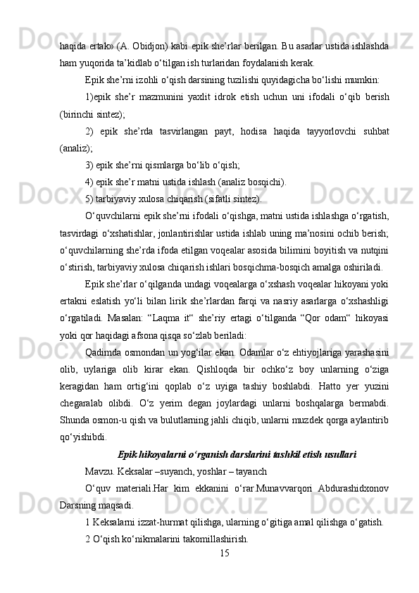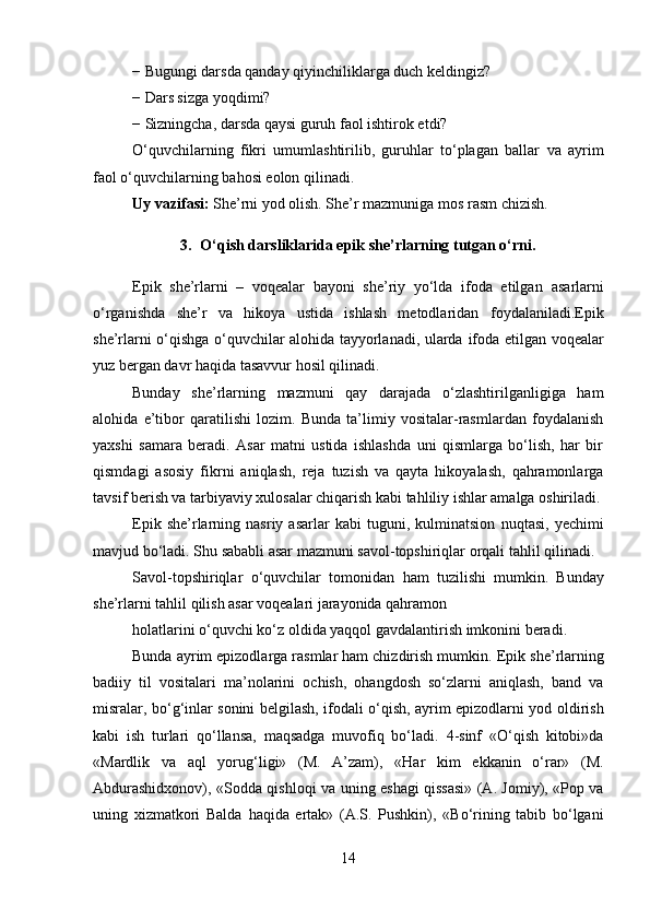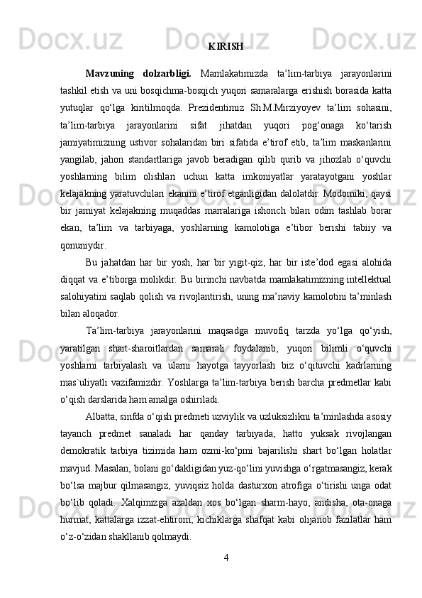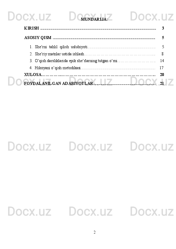 | FOYDALANILGAN ADABIYOTLAR............................................................ | 21 |