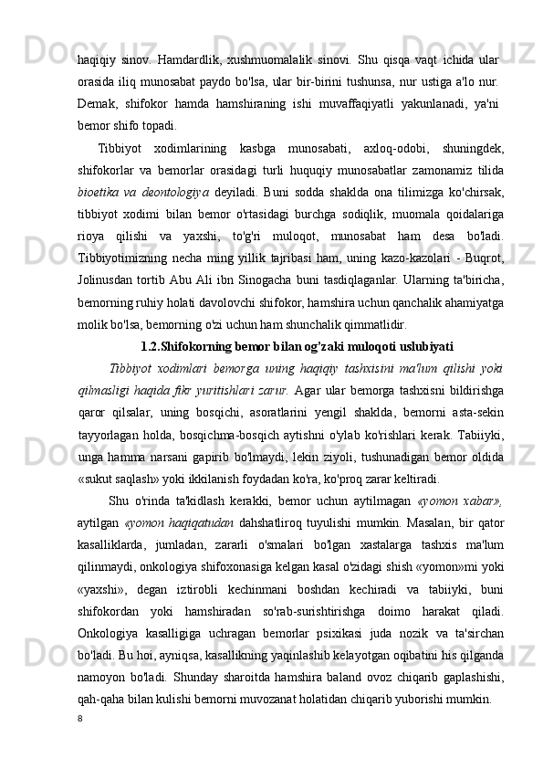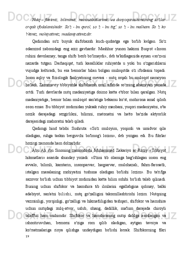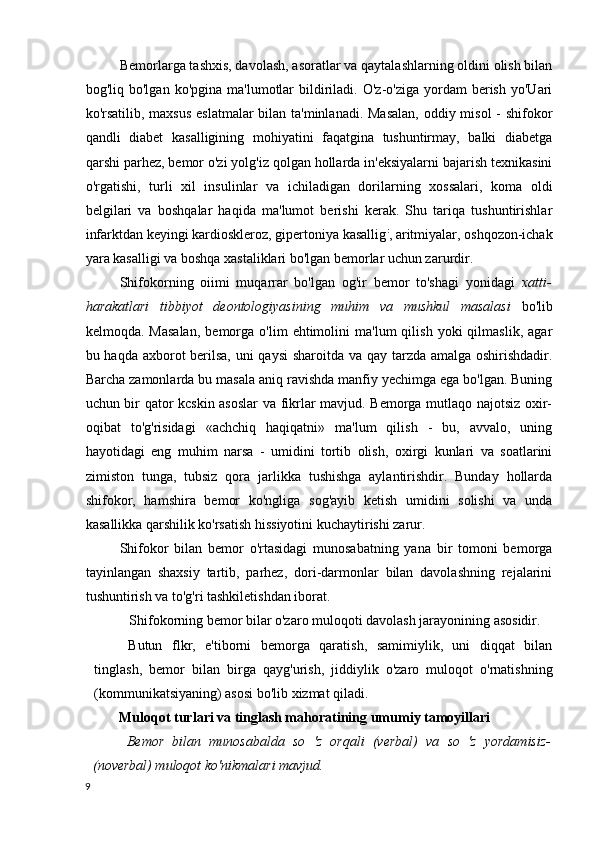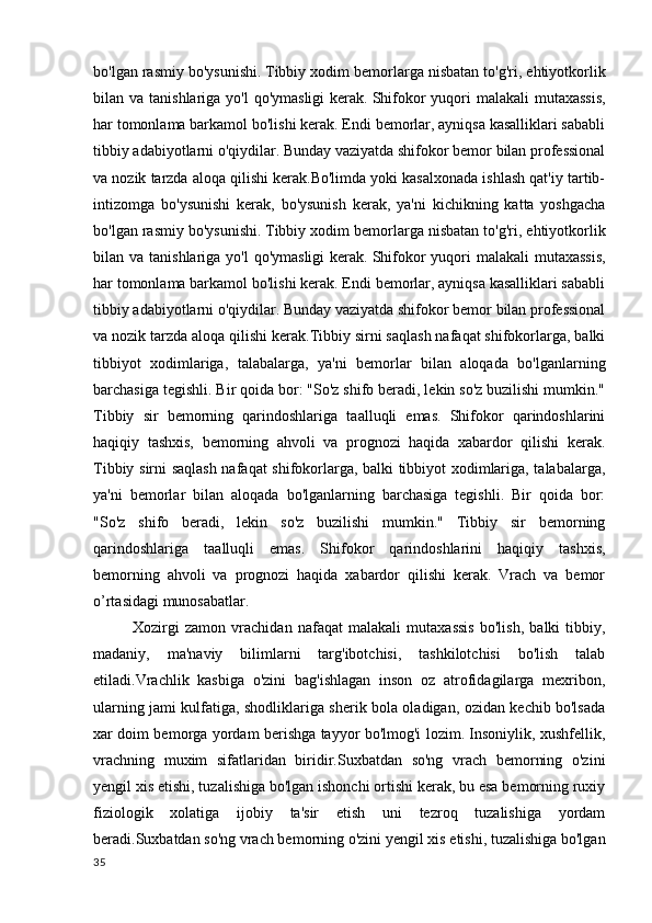 Shifokorlarning og’zaki va yozma nutqining identifikatsion xususiyatlari