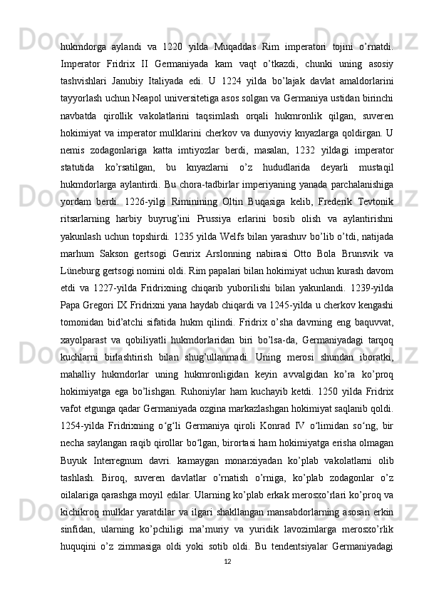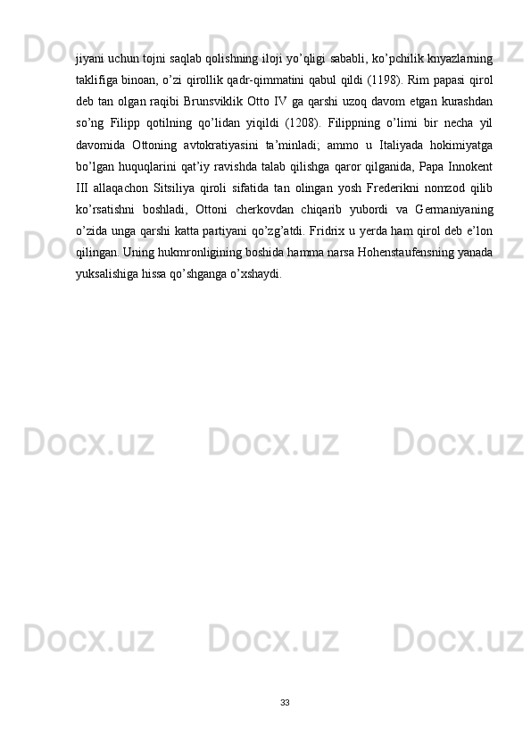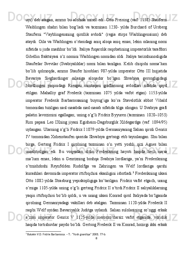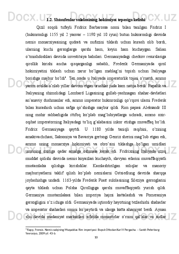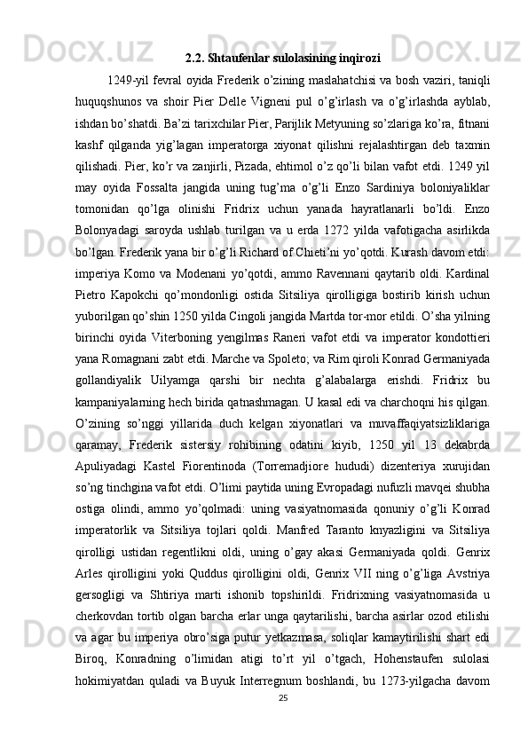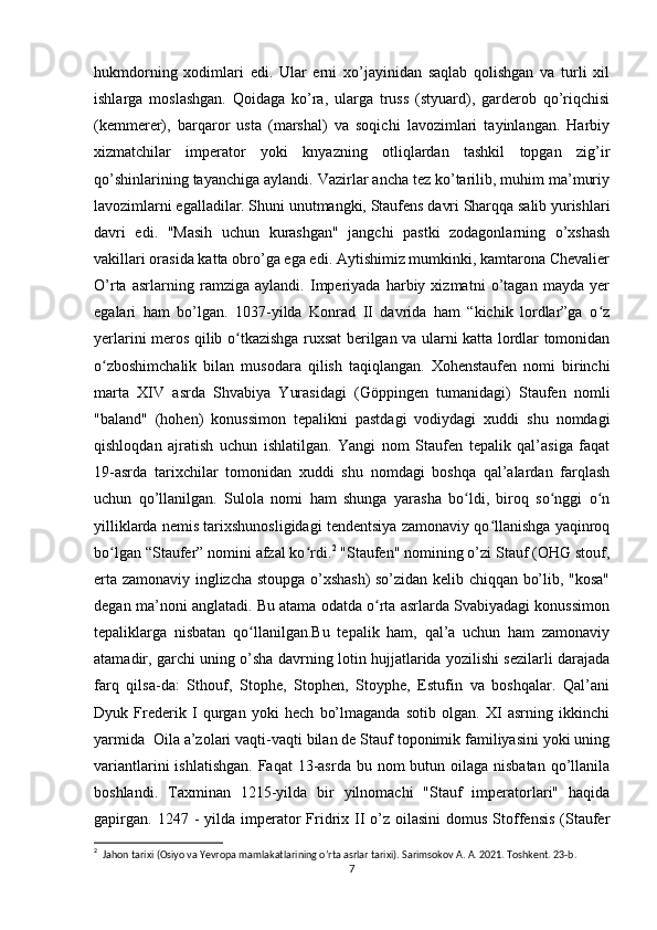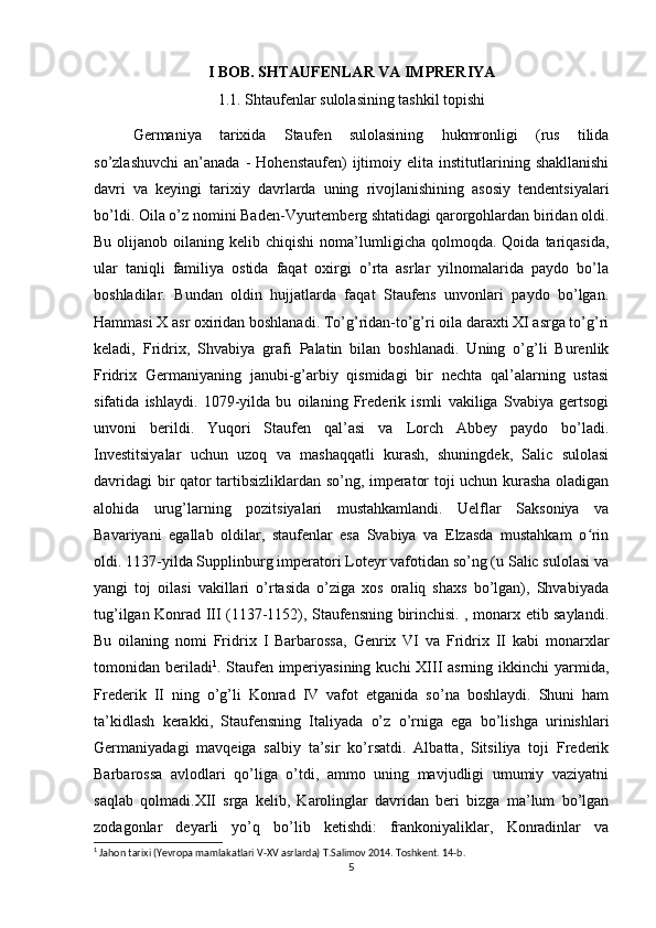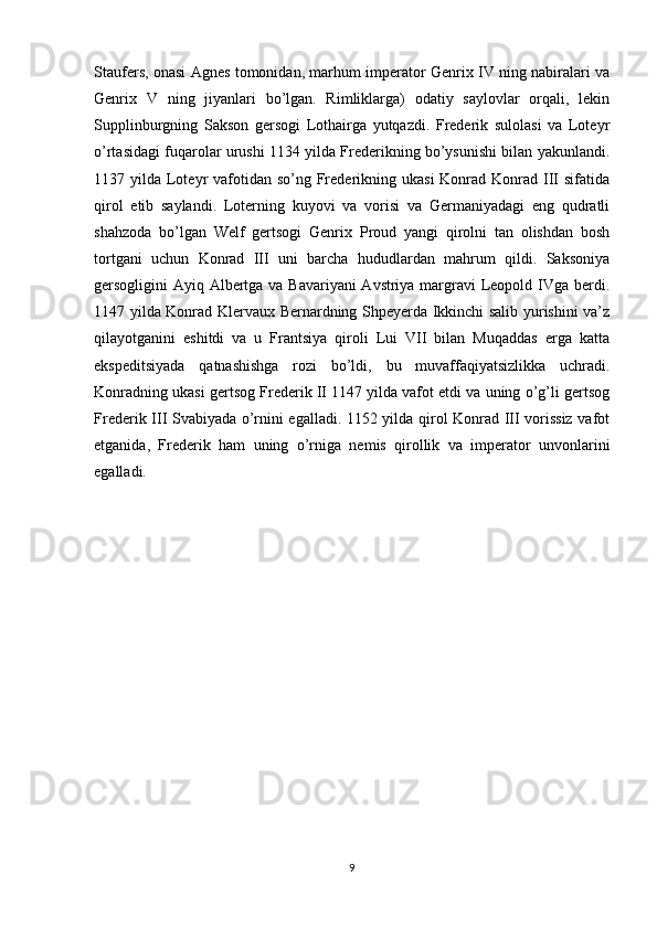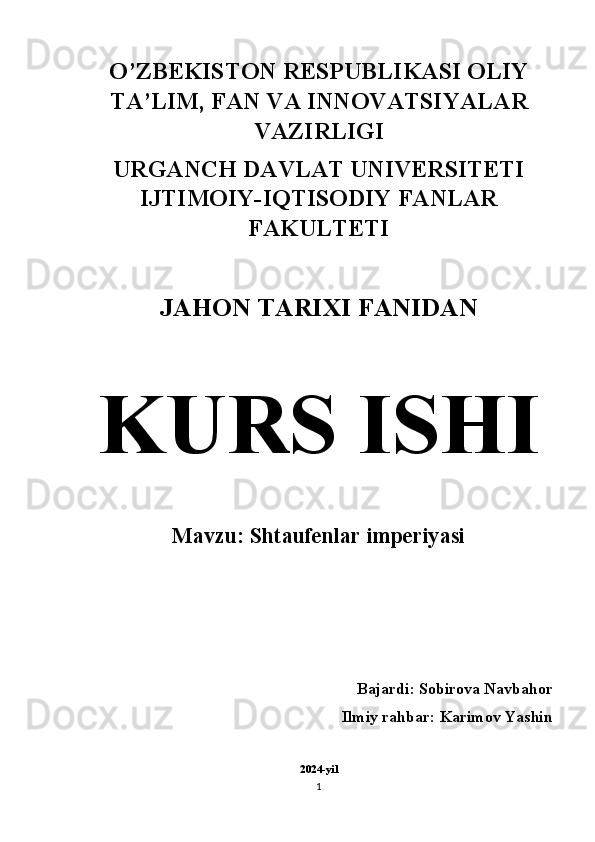 Shtaufenlar imperiyasi mavzusidagi kurs ishi