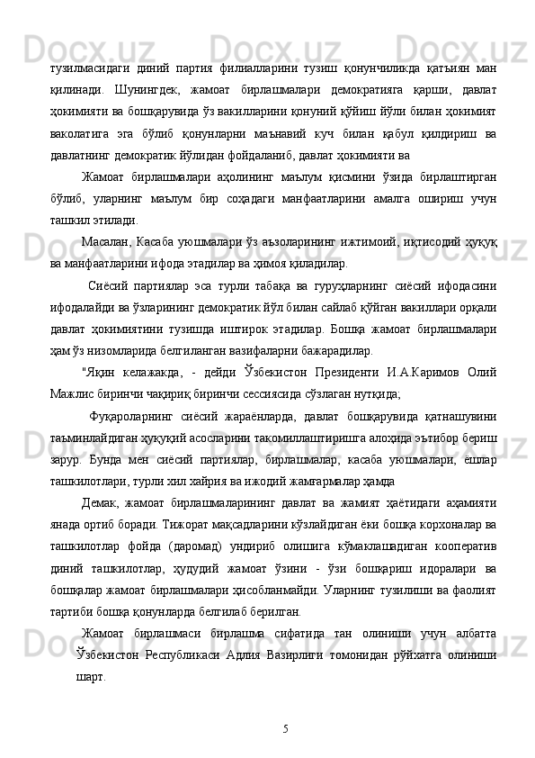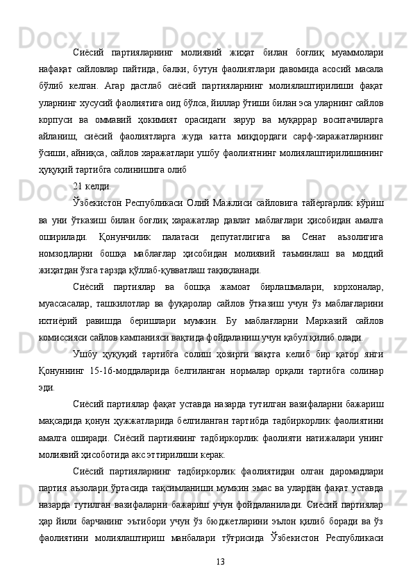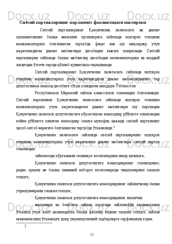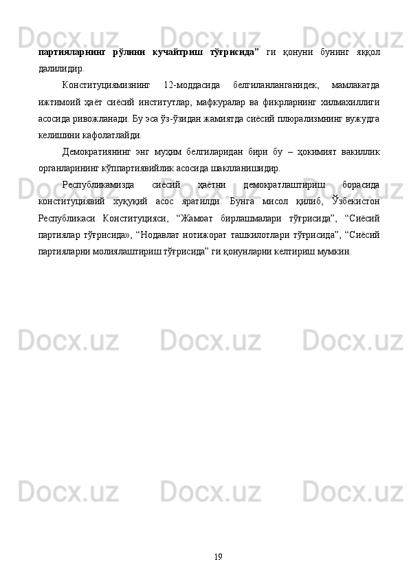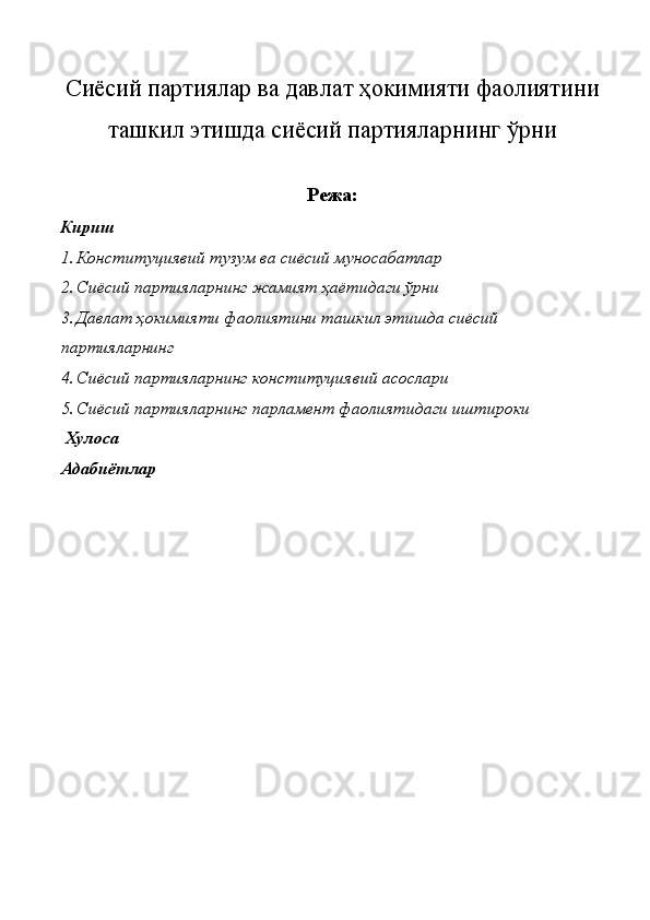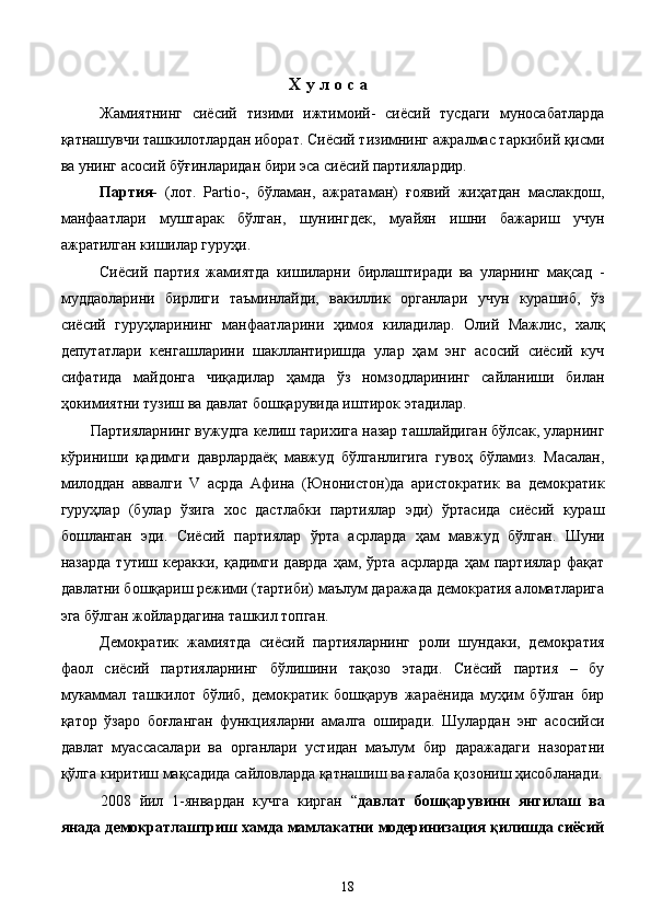 Сиёсий партиялар ва давлат ҳокимияти фаолиятини ташкил этишда сиёсий партияларнинг ўрни