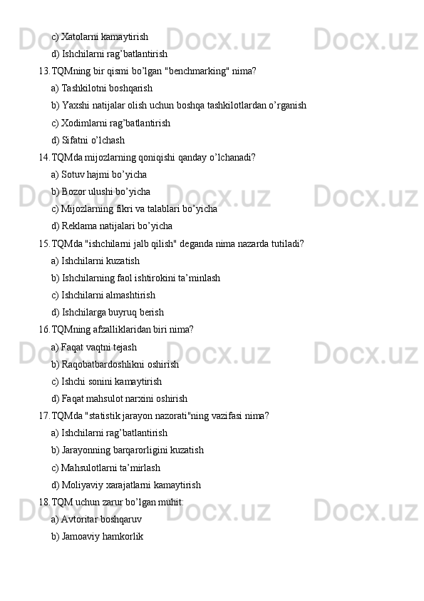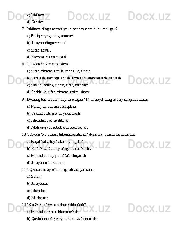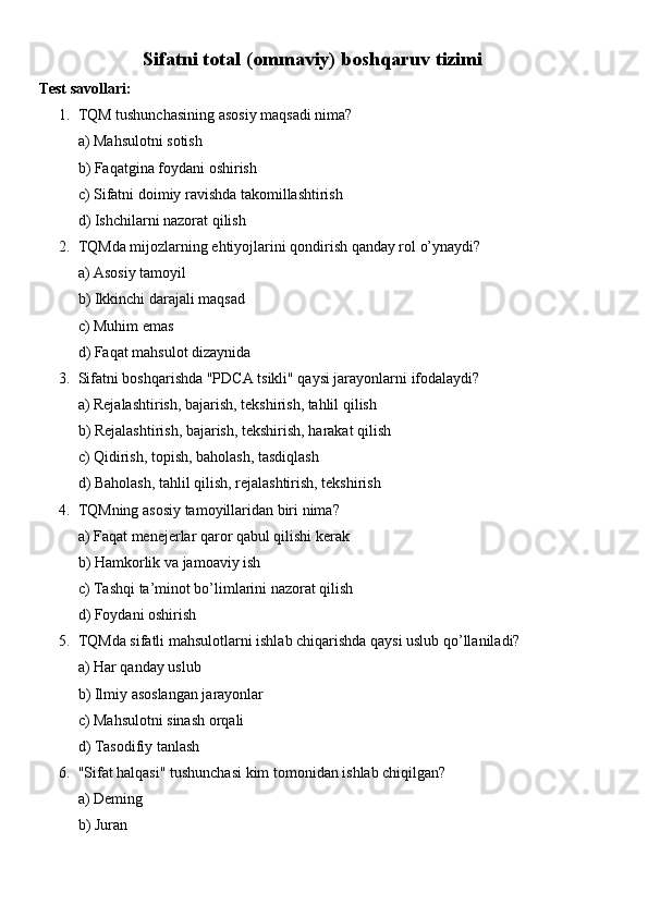 Sifatni total (ommaviy) boshqaruv tizimi test