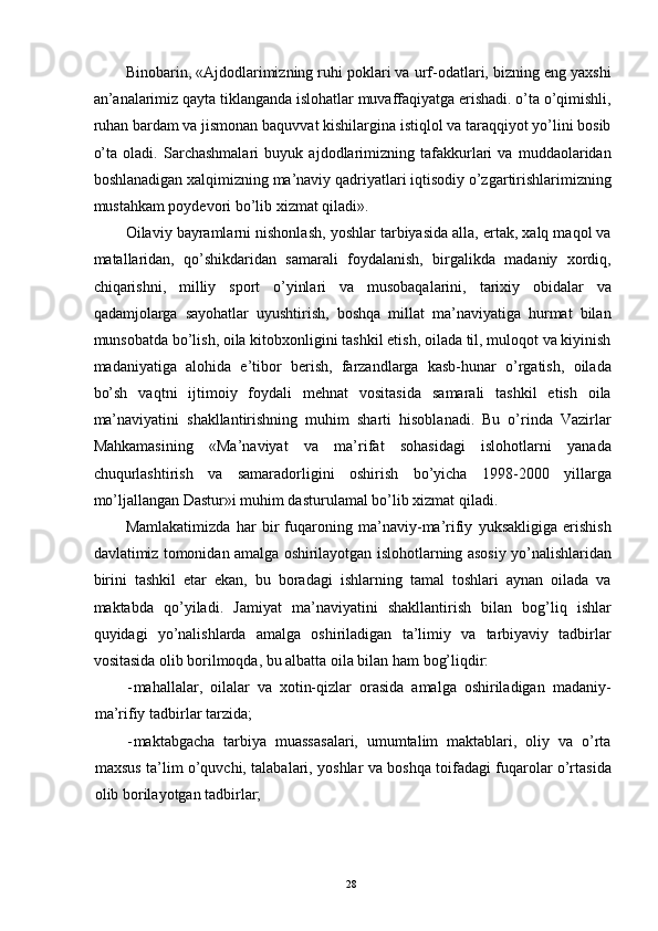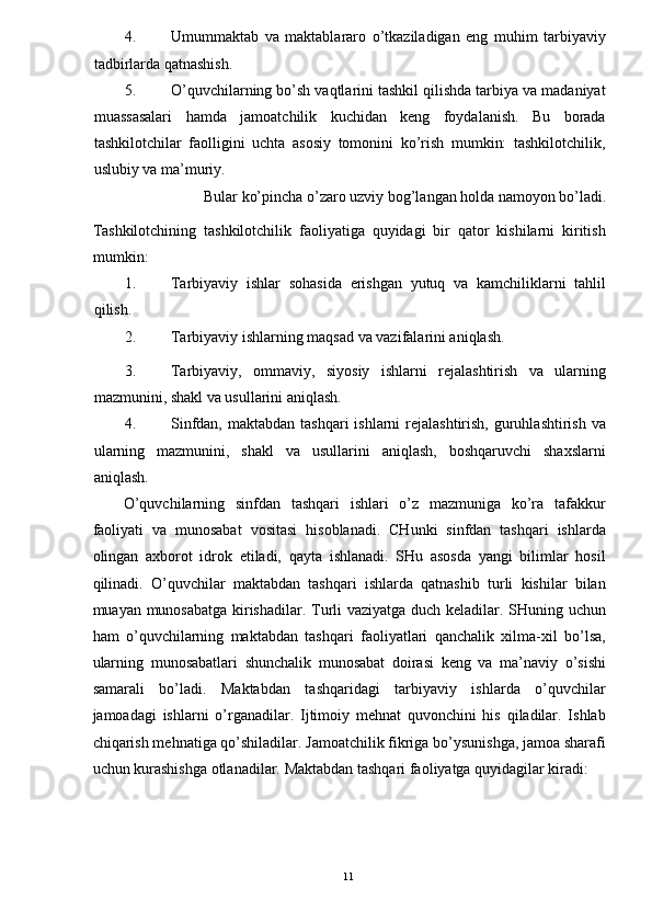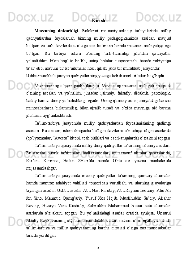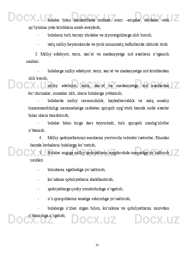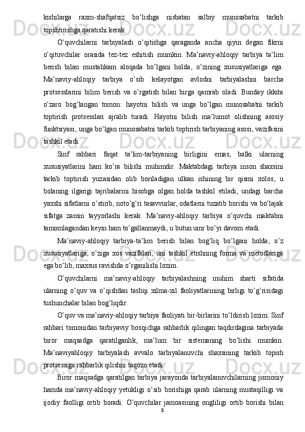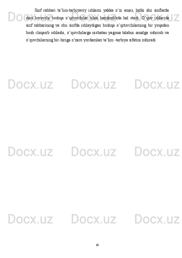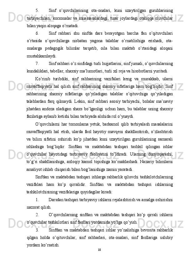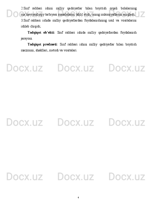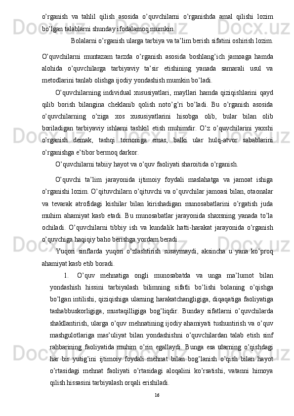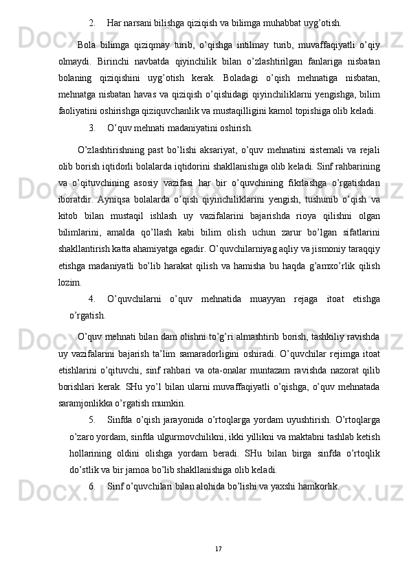 Sinf rahbari ishini milliy qadriyatlar bilan boyitish