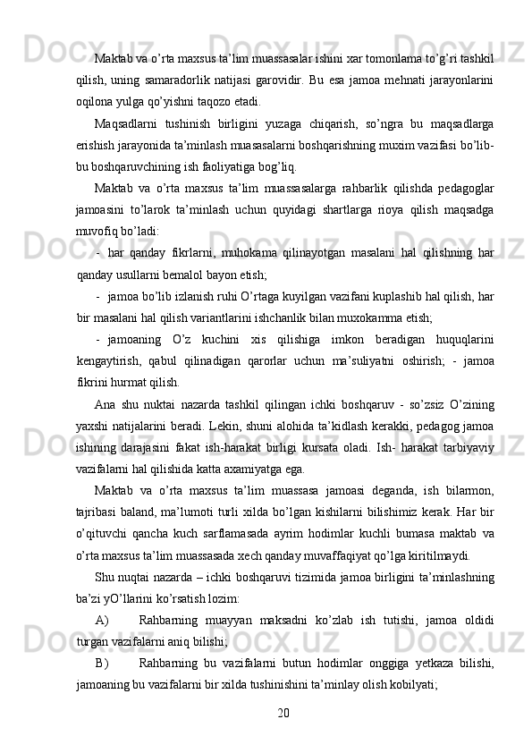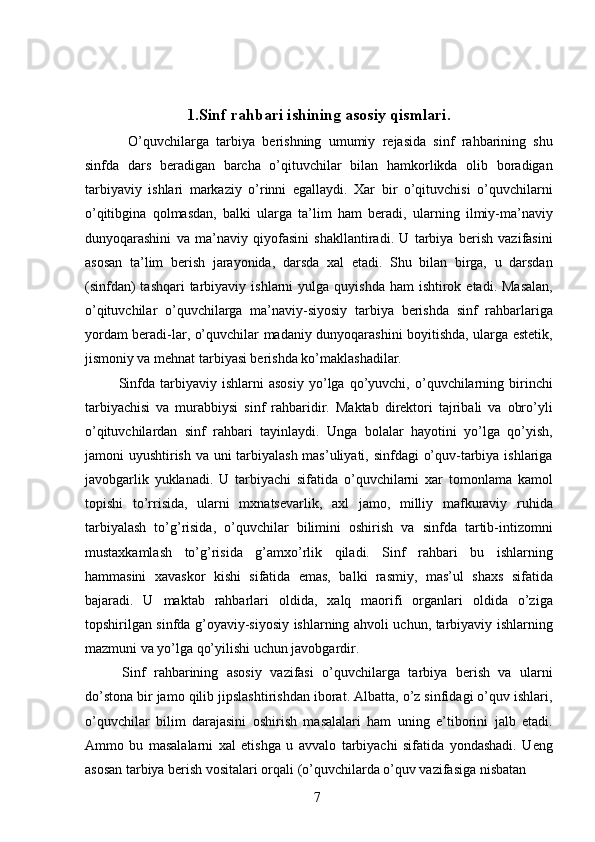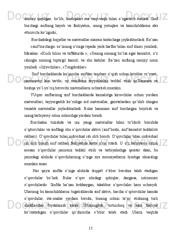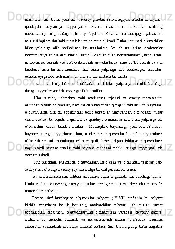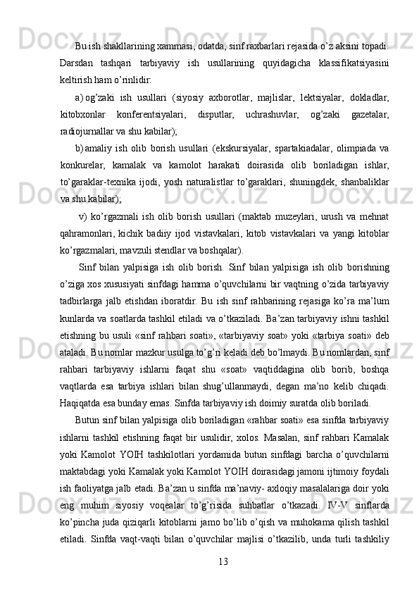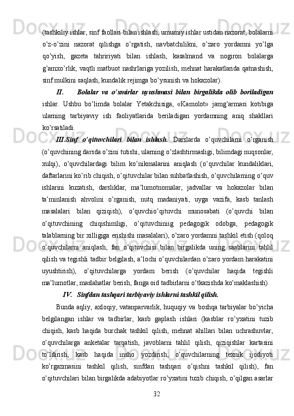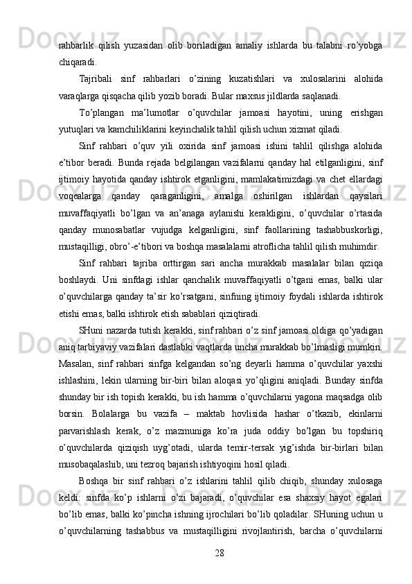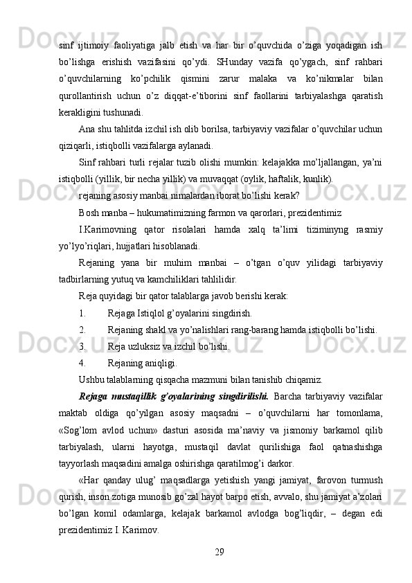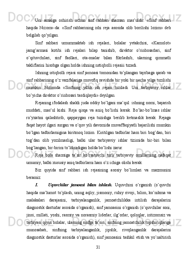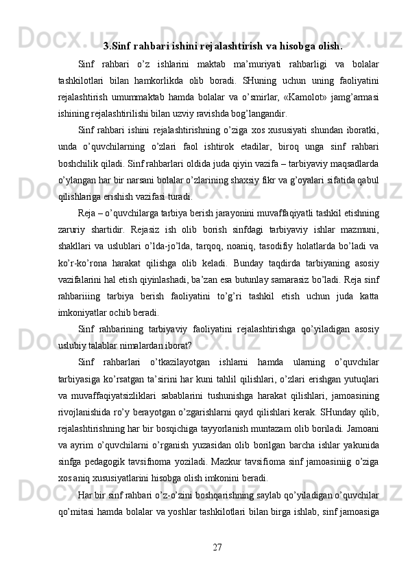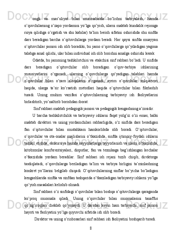 Sinf rahbari ishini rejalashtirish va hisobga olishda pedagogik jamoaning o’rni