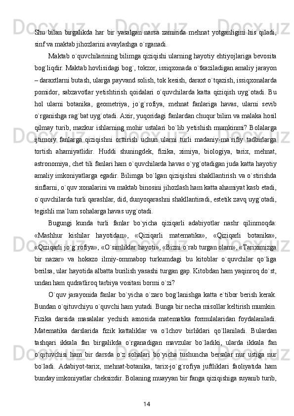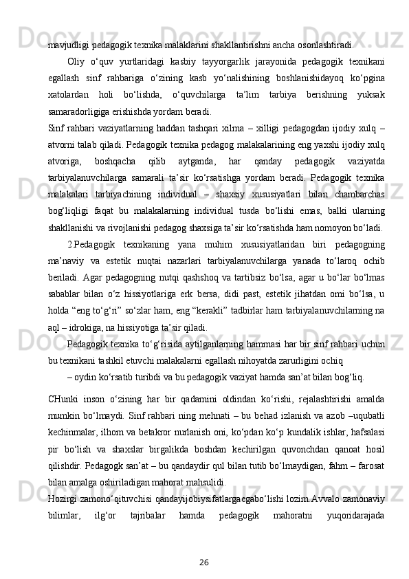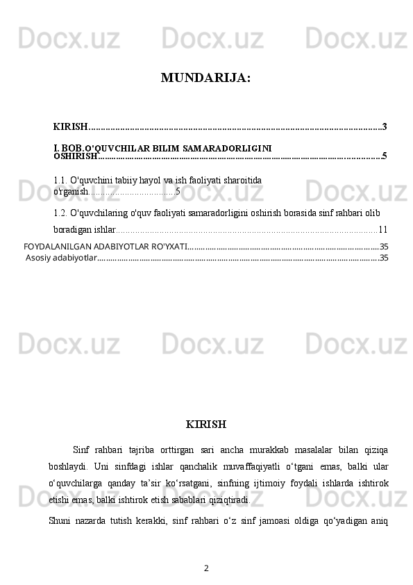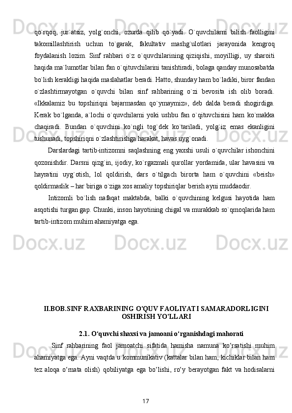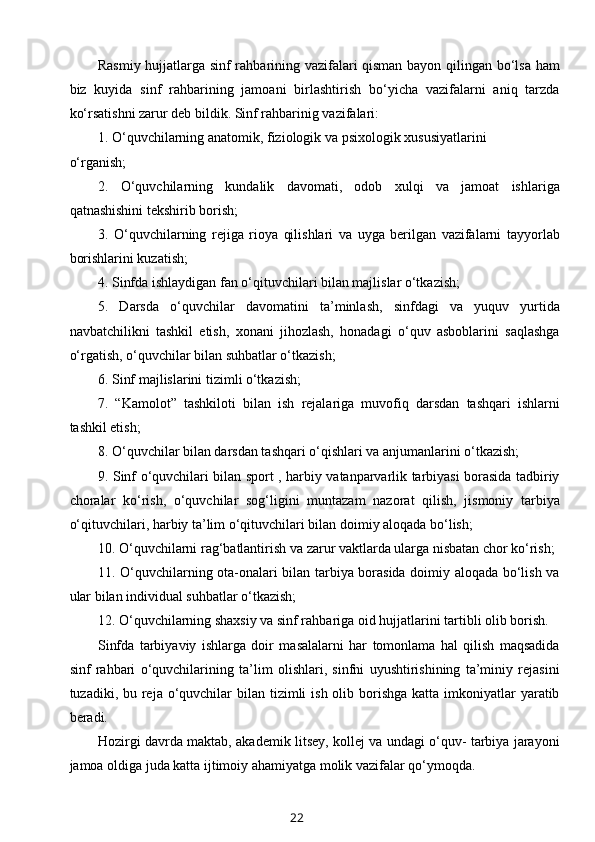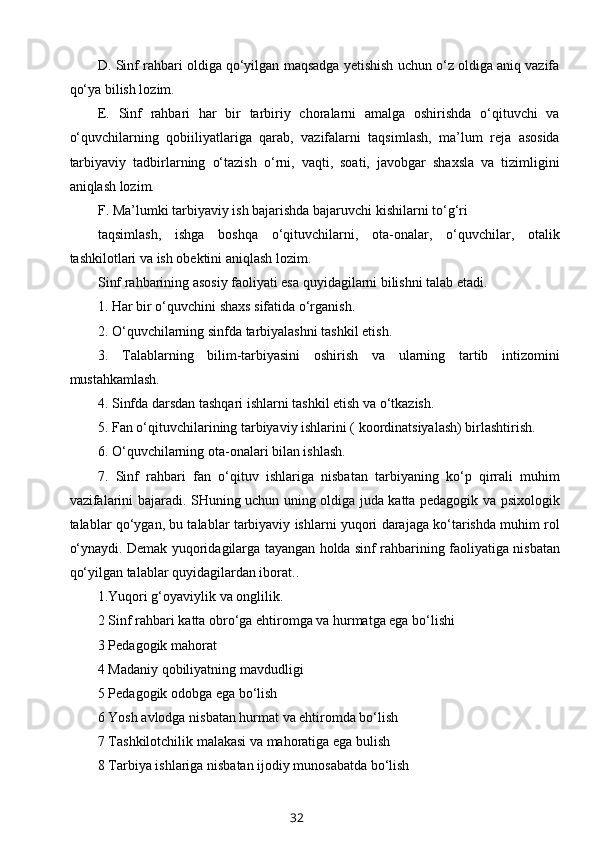 Sinf rahbarining o’quv faoliyati samaradorligini oshirish yo’llari