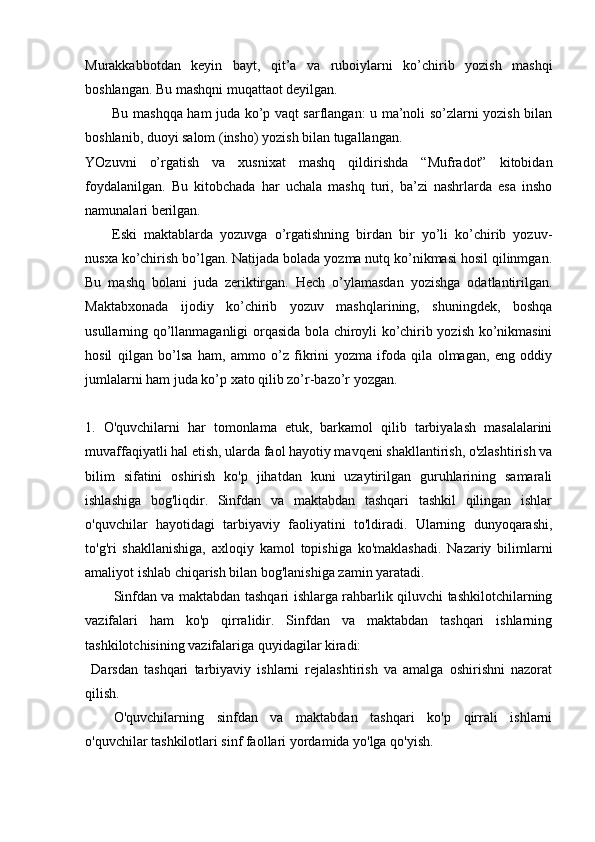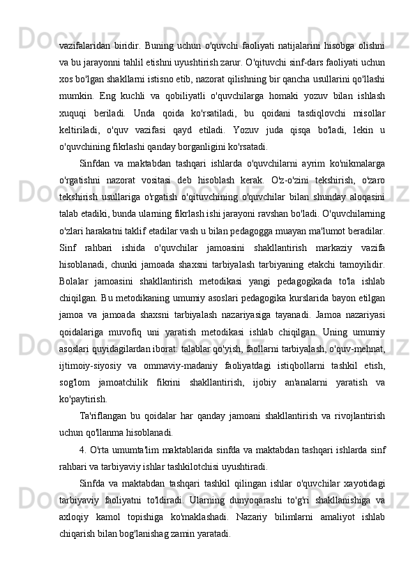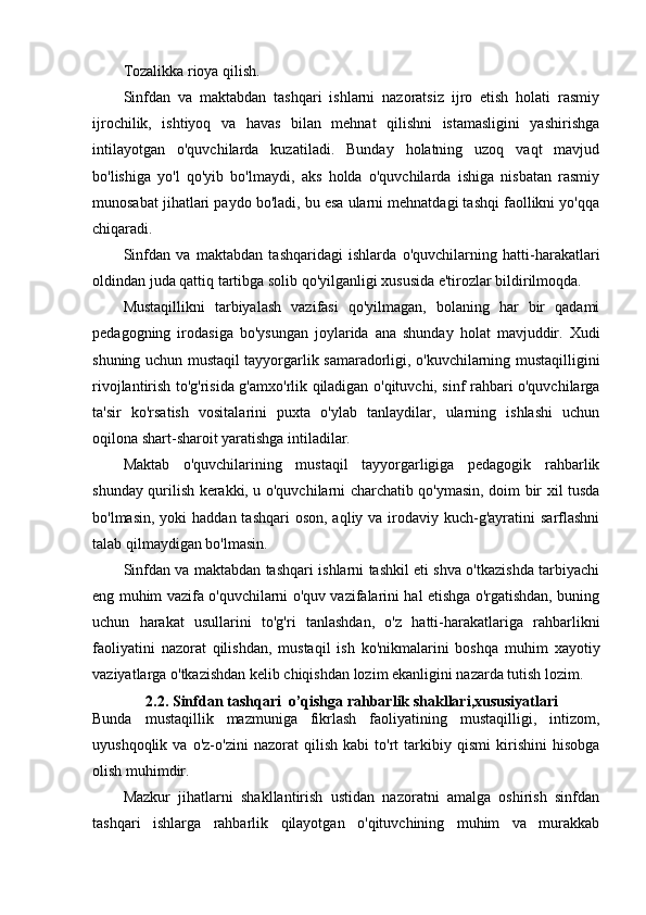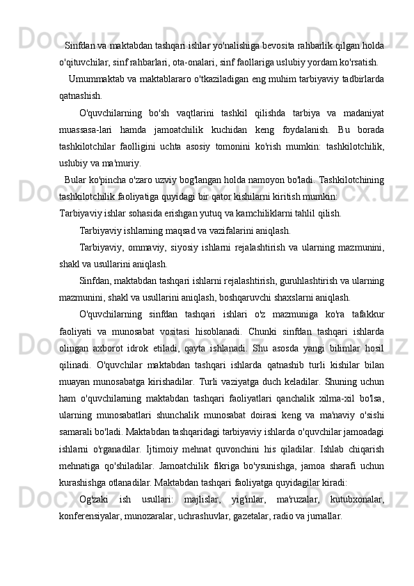2.2. Sinfdan tashqari o’qishga rahbarlik shakllari,xususiyatlari