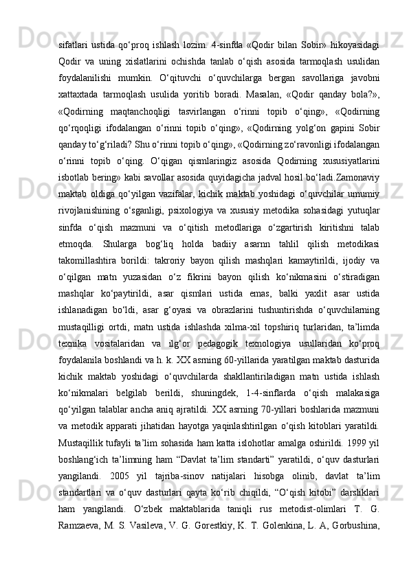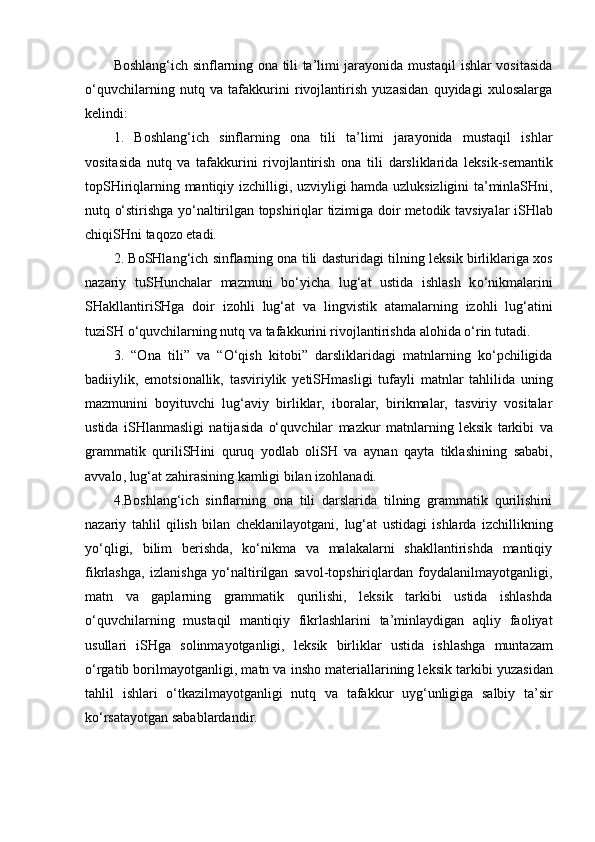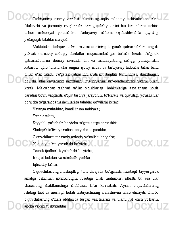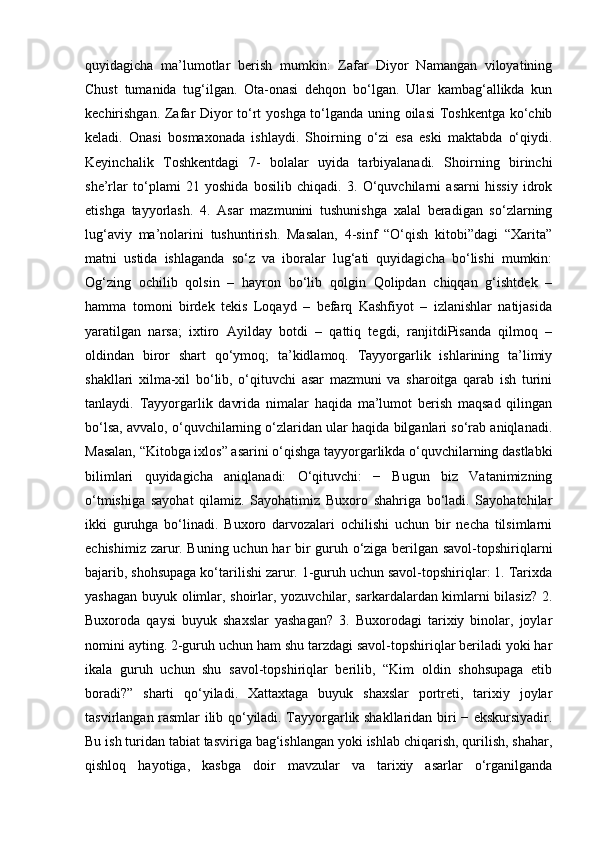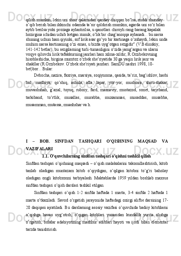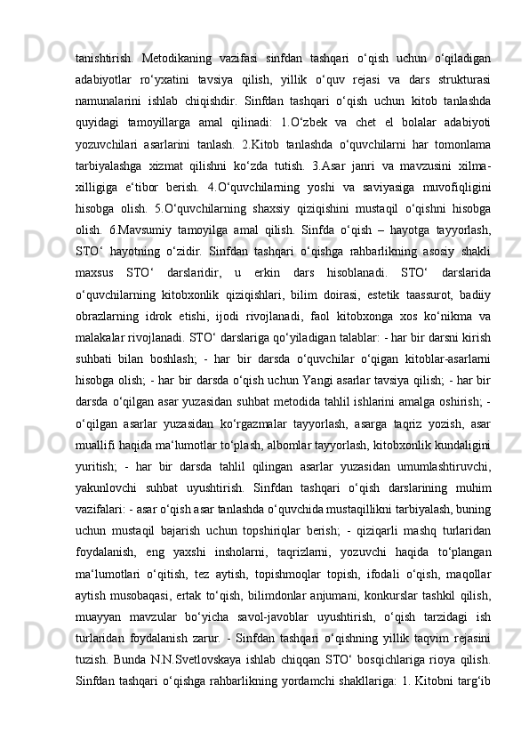 I – BOB. SINFDAN TASHQARI O’QISHNING MAQSAD VA VAZIFALARI