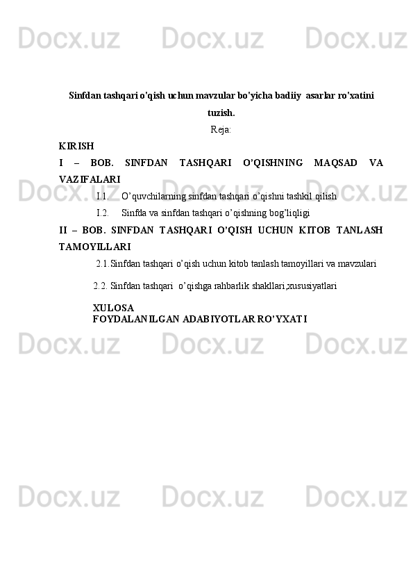 Sinfdan tashqari o'qish uchun mavzular bo'yicha badiiy asarlar ro'yxatini tuzish