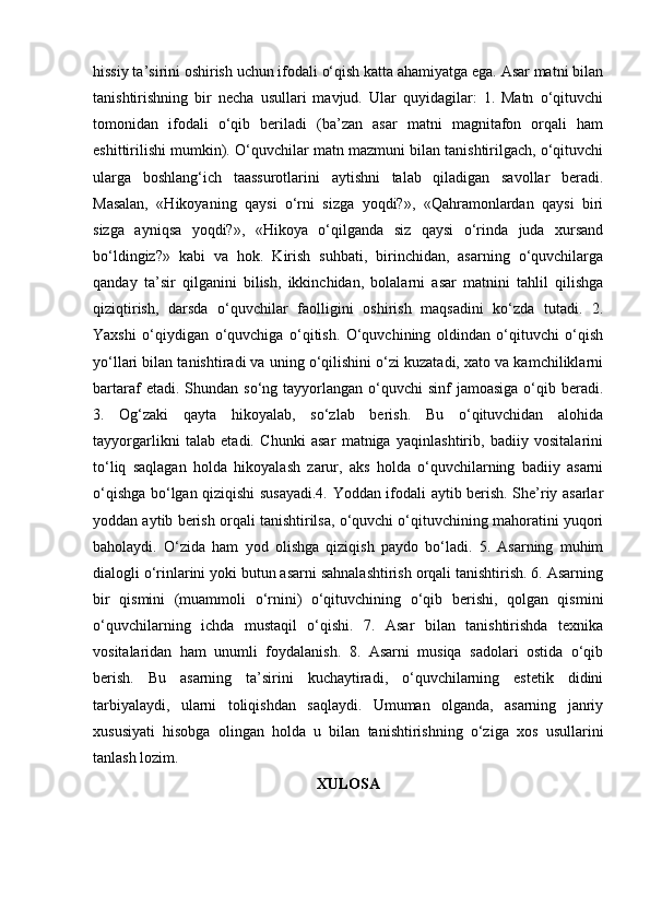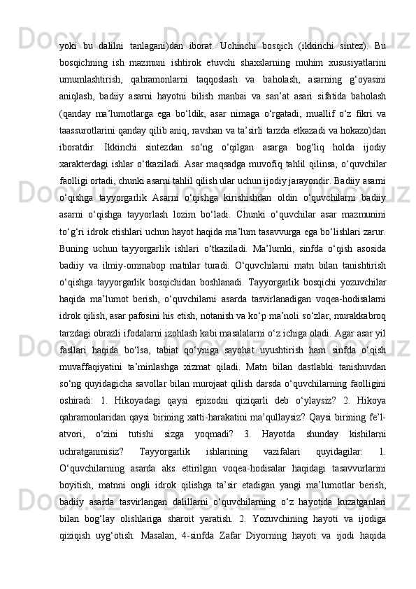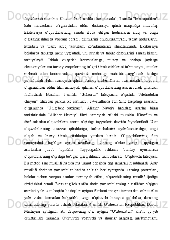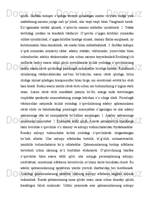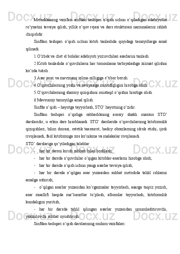 II – BOB. SINFDAN TASHQARI O’QISH UCHUN KITOB TANLASH TAMOYILLARI
