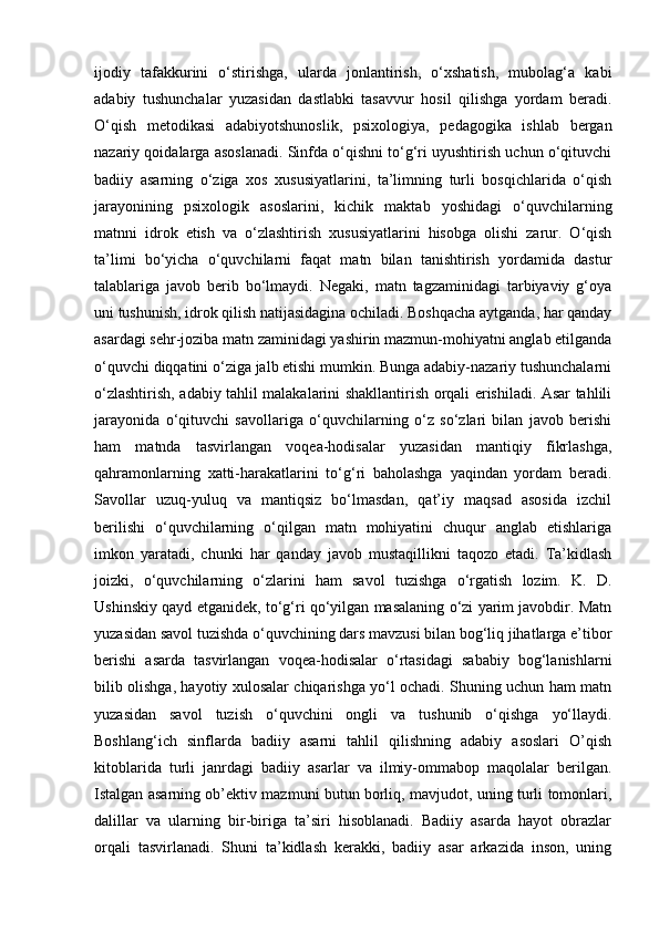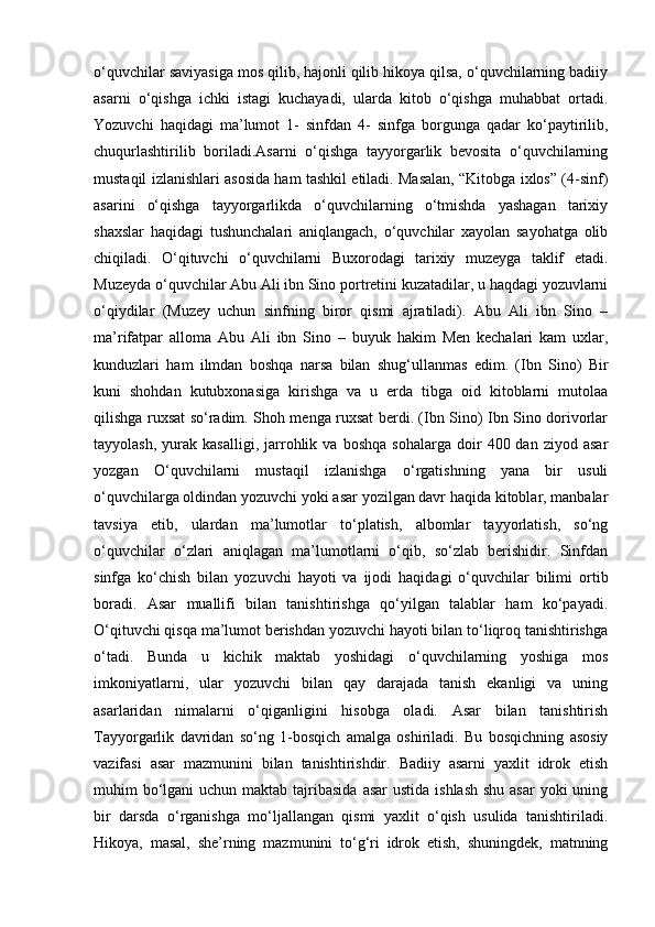 2.1.Sinfdan tashqari o’qish uchun kitob tanlash tamoyillari va mavzulari