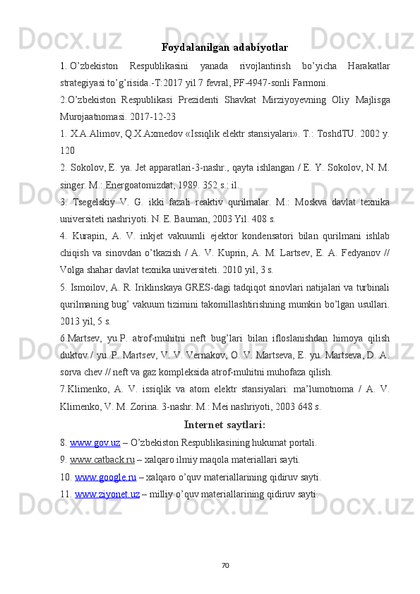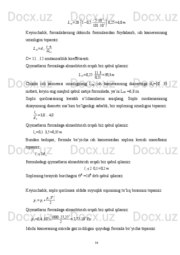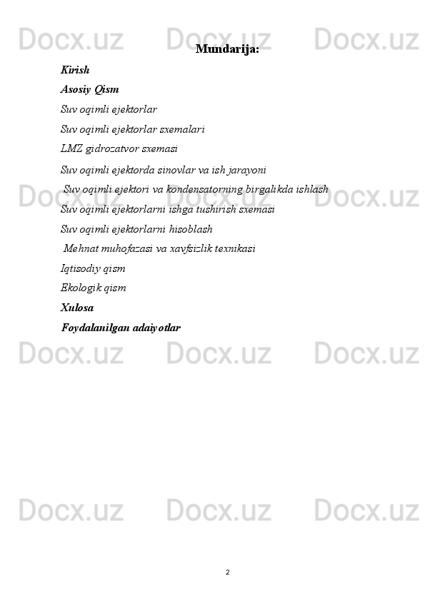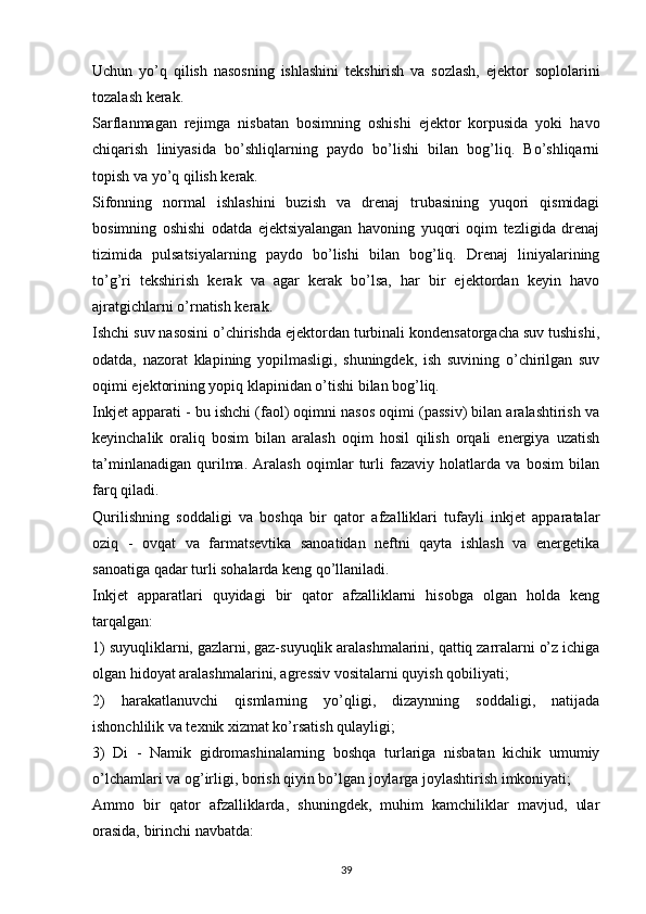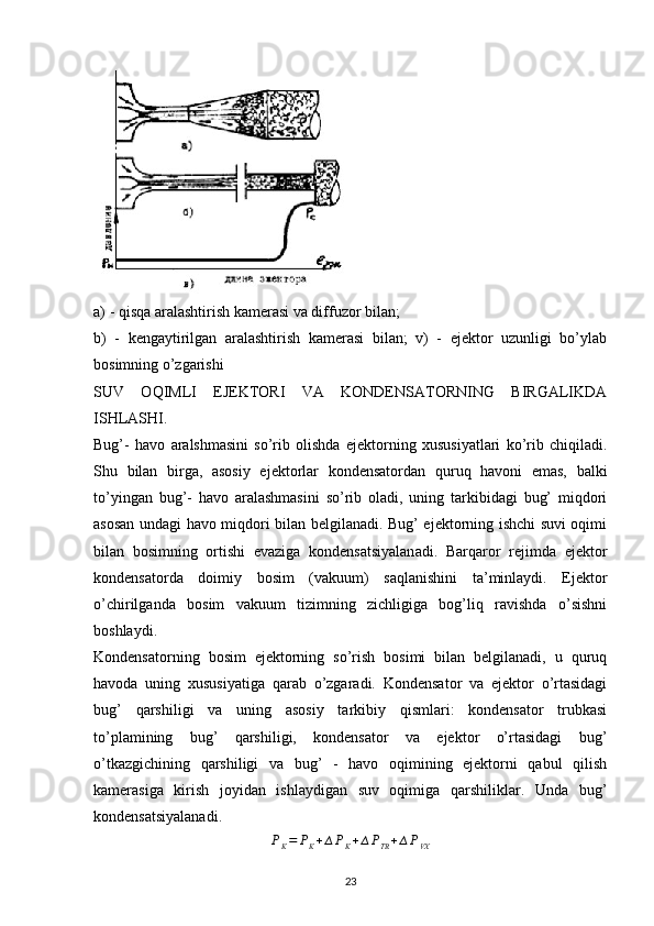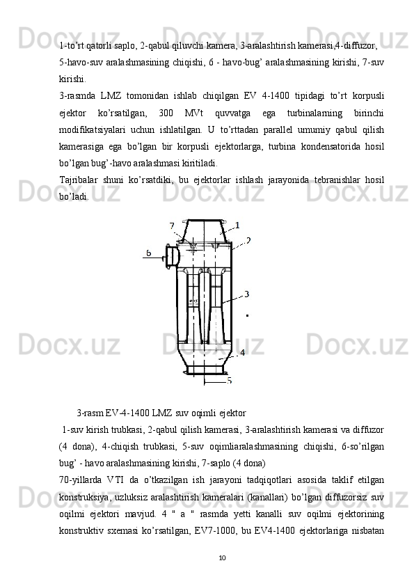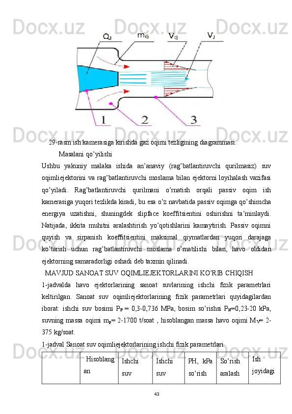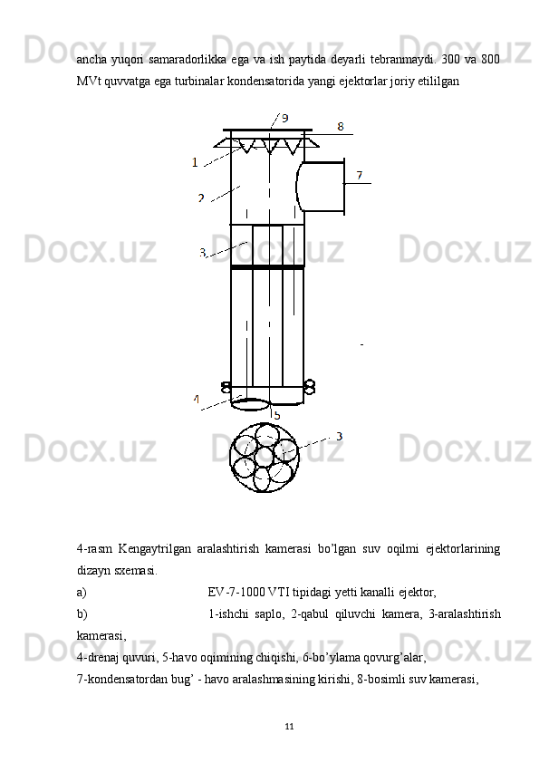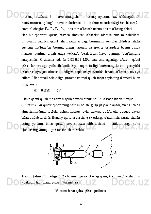 SIRDARYO IES da 300mw li bug' turbina qurilmasi kondensatorida kondensatsiyalanmaydigan bug'-havo aralashmasini olib tashlovchi suv oqimli ejektorlarning hisobi