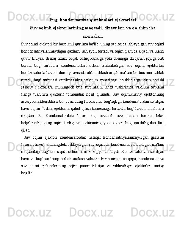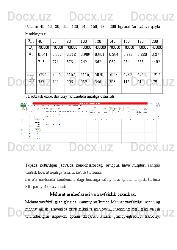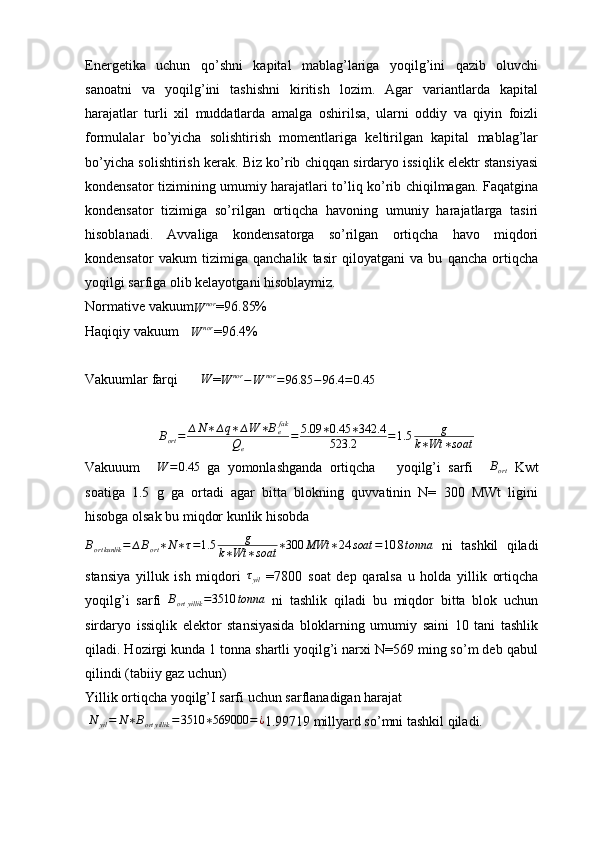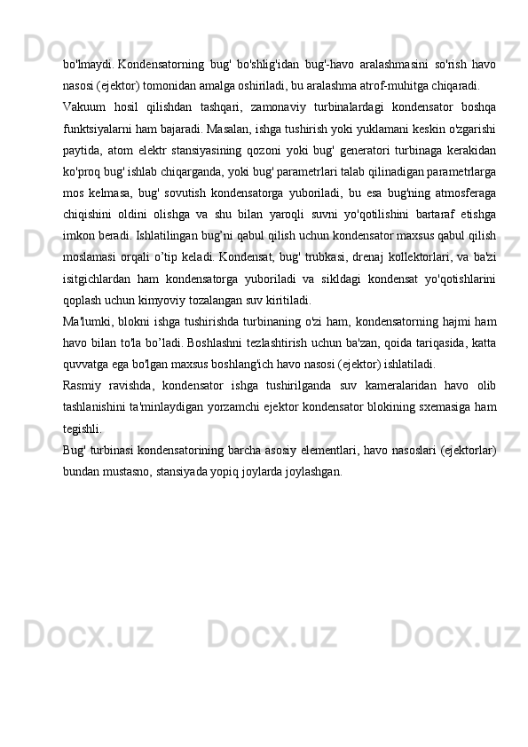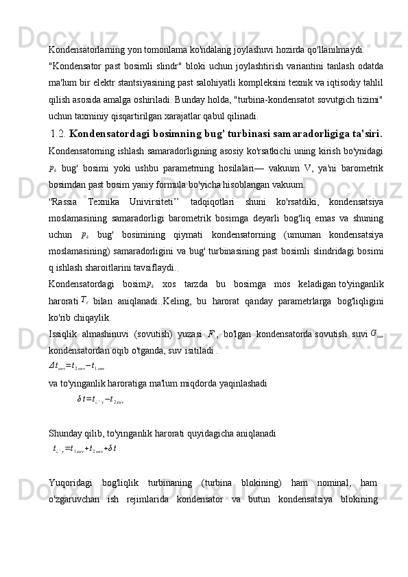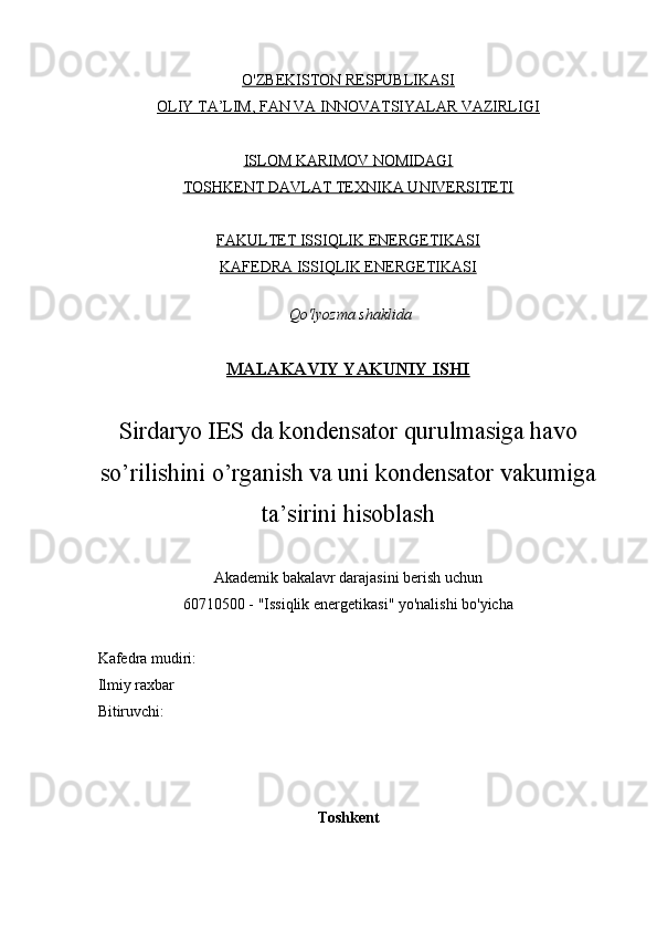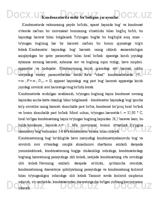 Sirdaryo IES da kondensator qurulmasiga havo so’rilishini o’rganish va uni kondensator vakumiga ta’sirini hisoblash