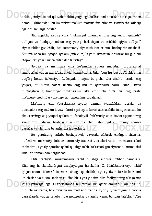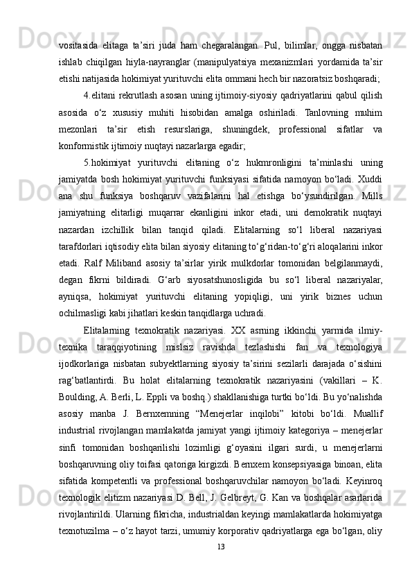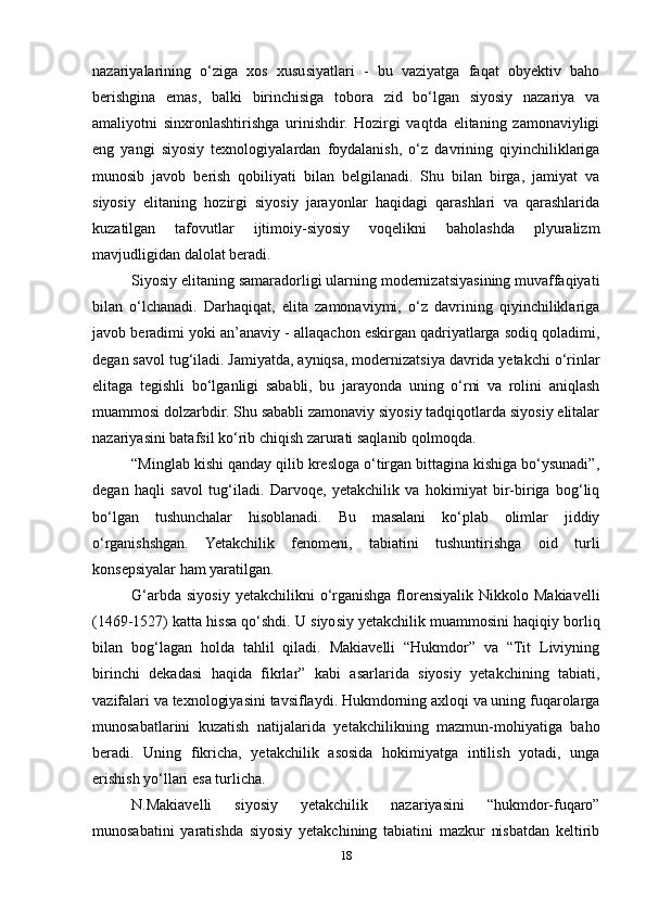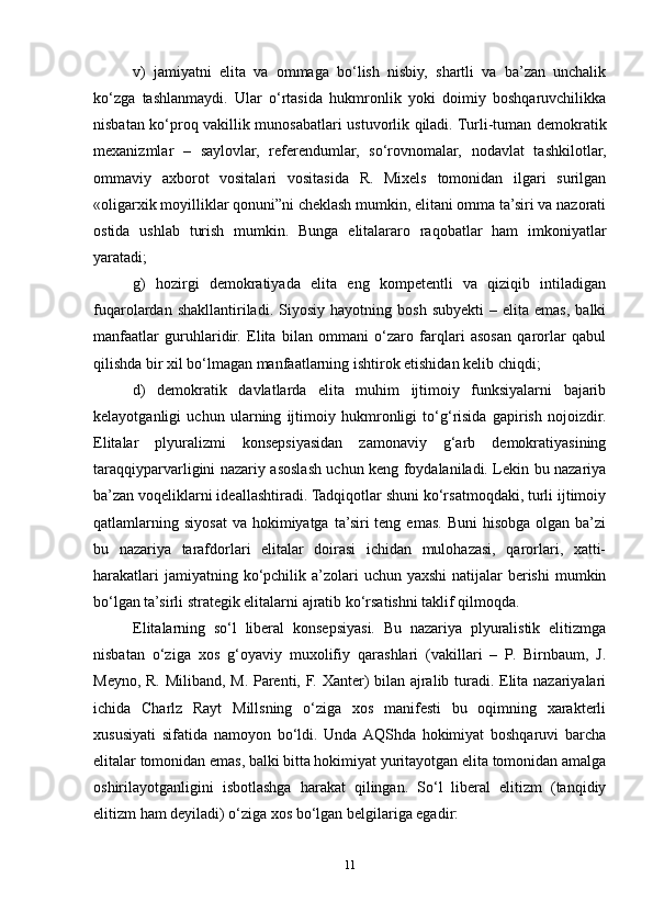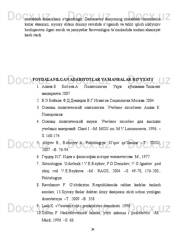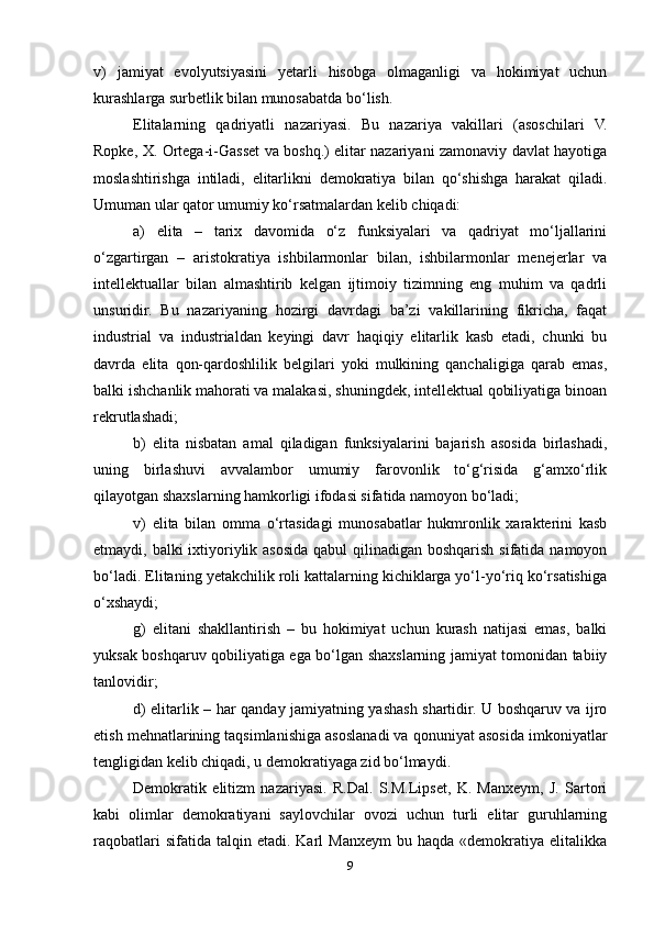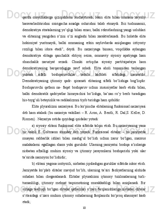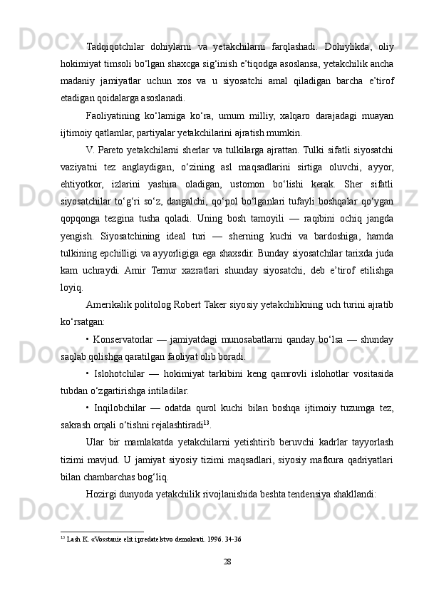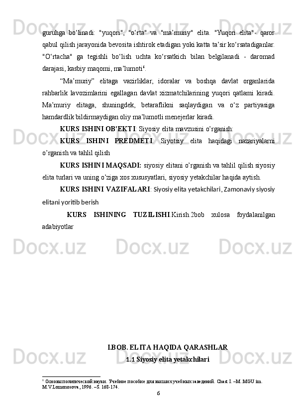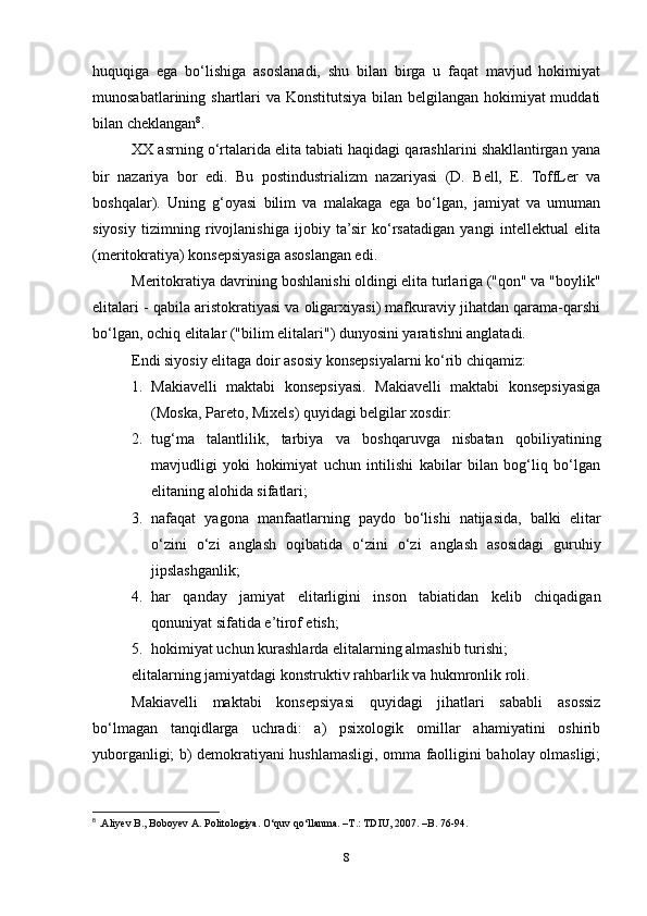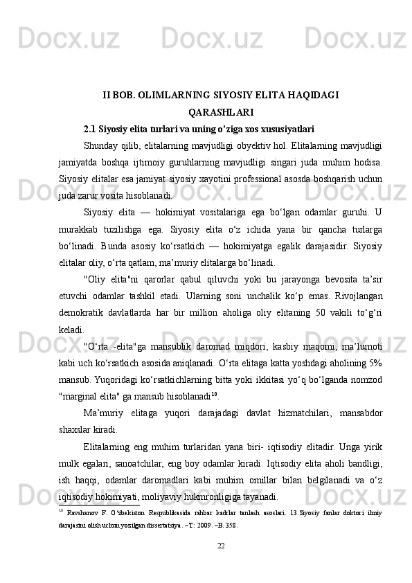 | II bob. SIYOSIY ELITA HAQIDA OLIMLARNING QARASHLARI | ||