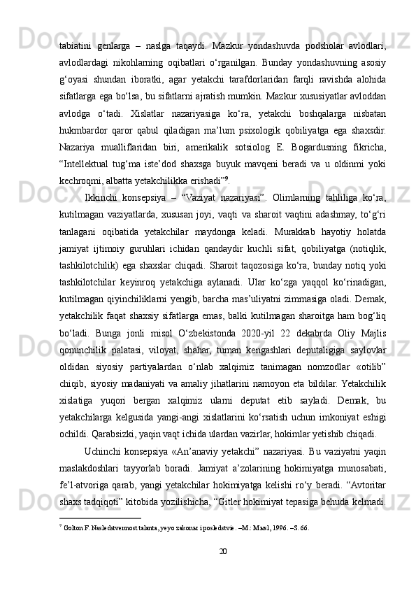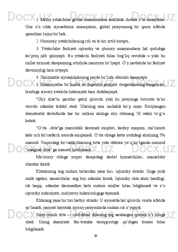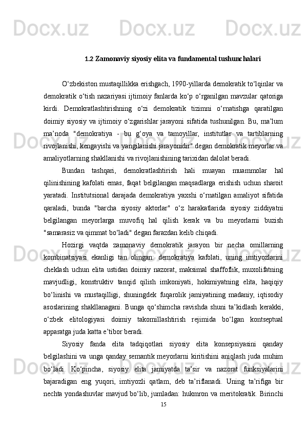 | 1.2 Zamonaviy siyosiy elita | 14-20 | |