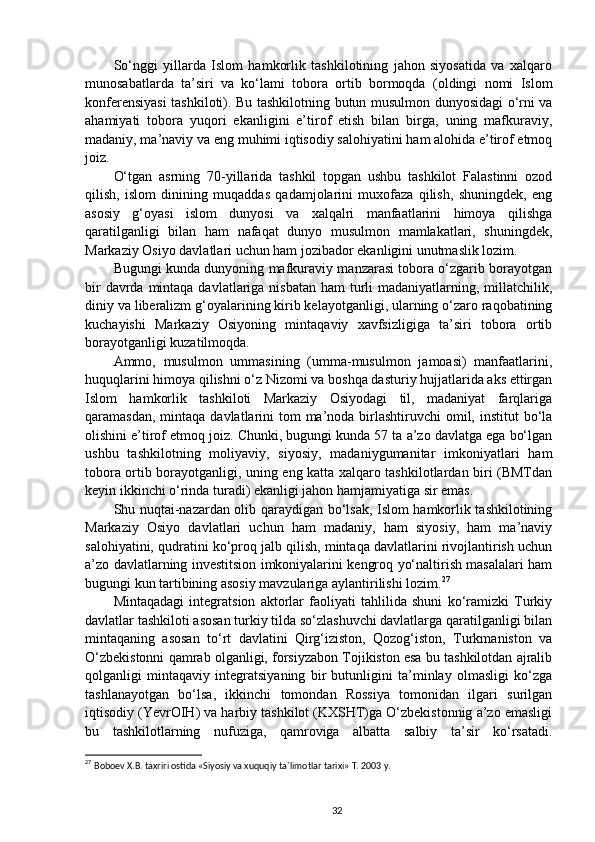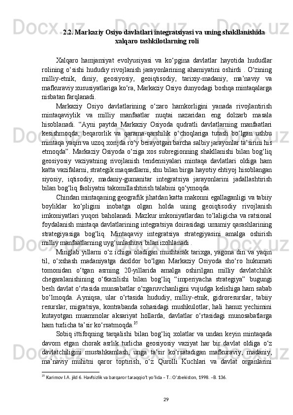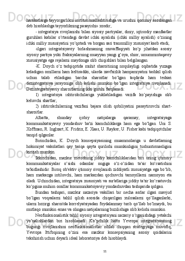 II BOB. ZAMONAVIY JAMIYATDA SIYOSIY INTEGRATSIYANING DOLZARBLIGI VA AHAMIYATI 25-33