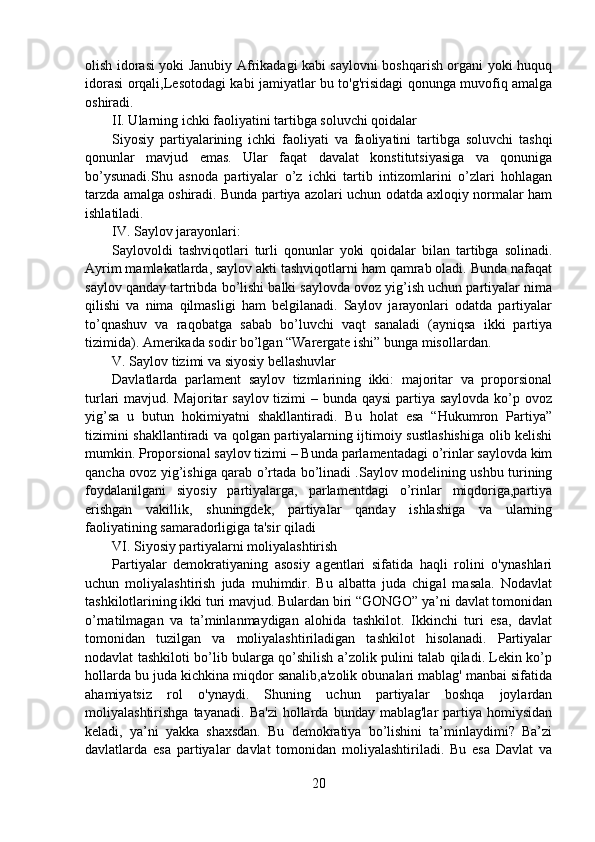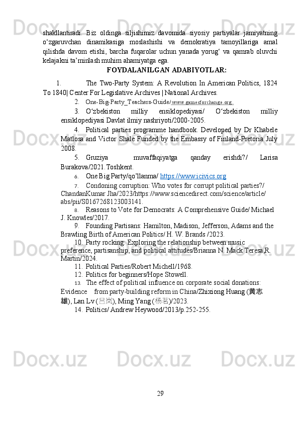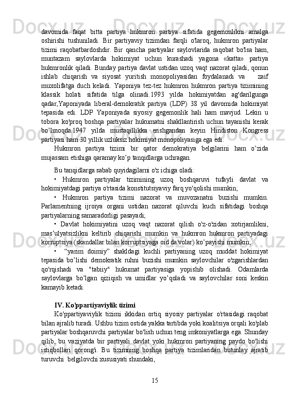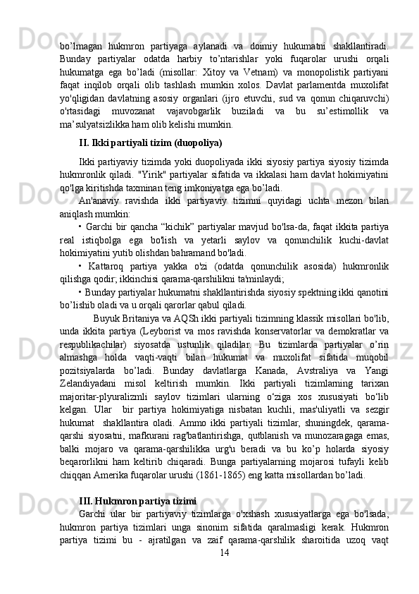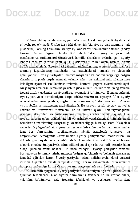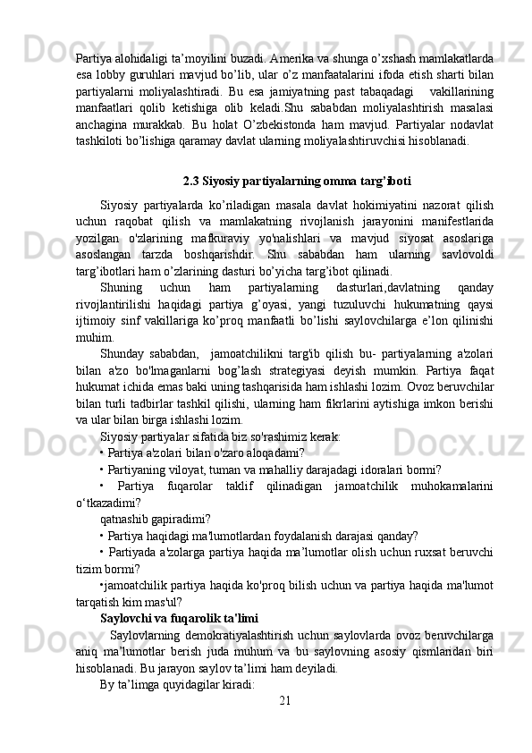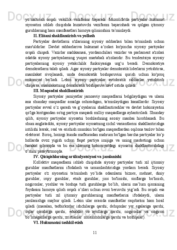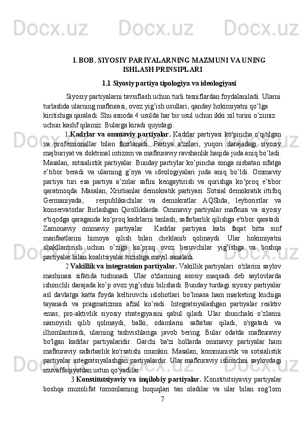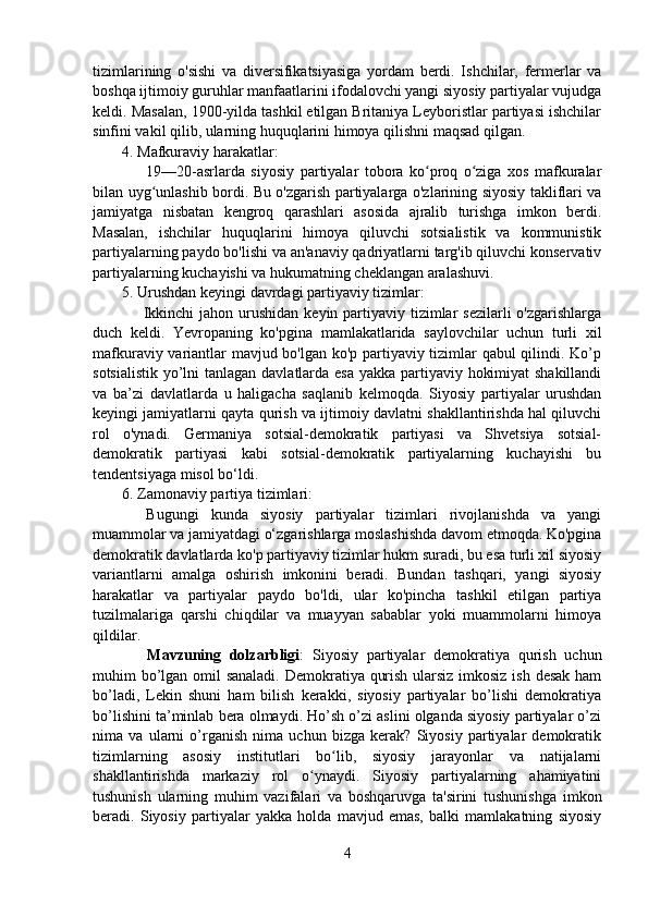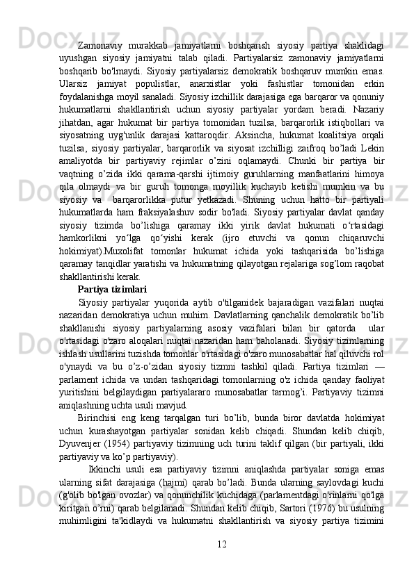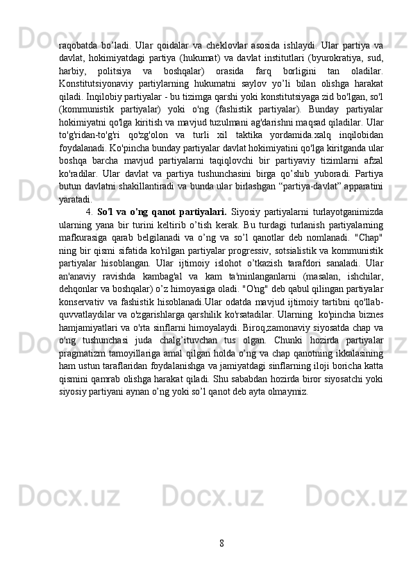 Siyosiy partiyalar va siyosiy partiya tizimlari