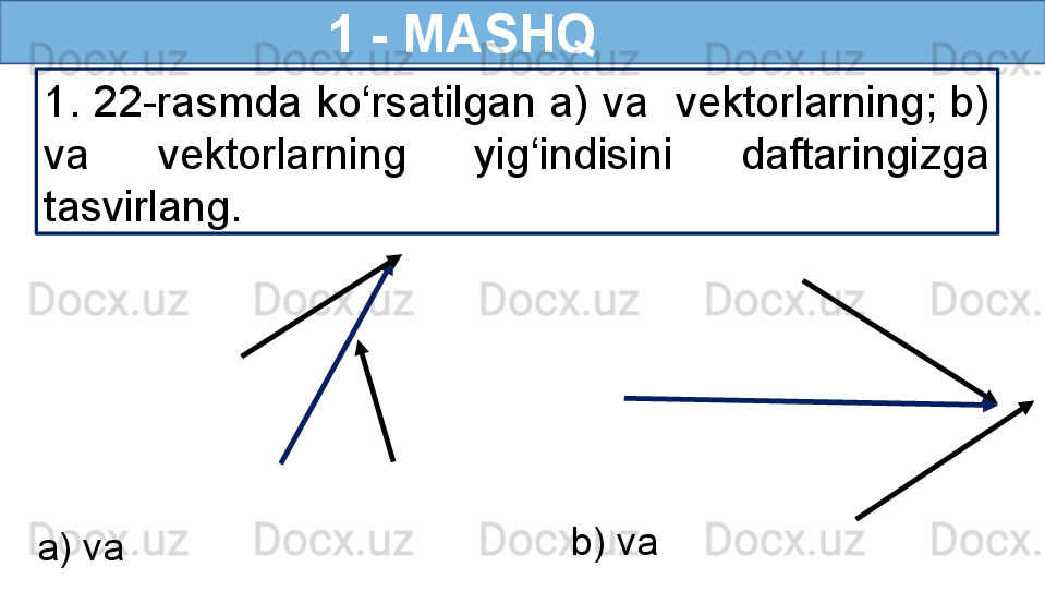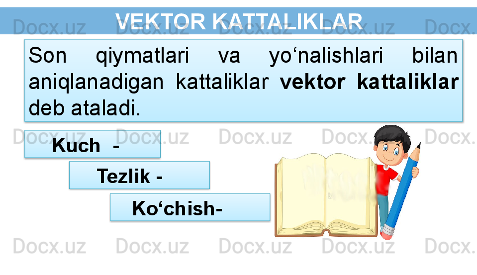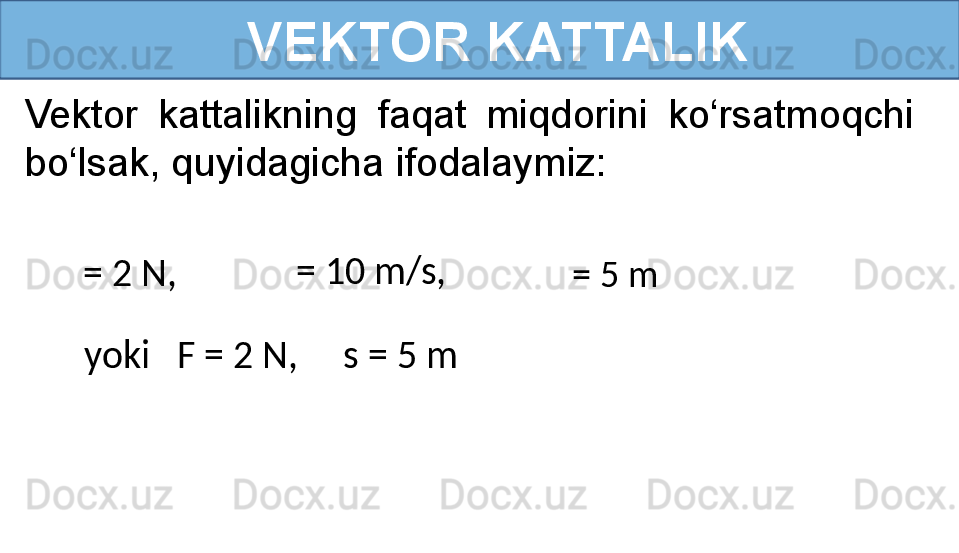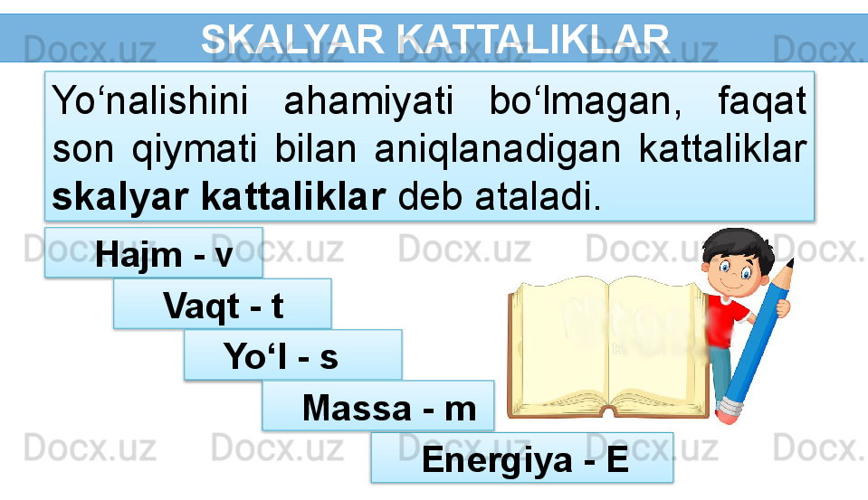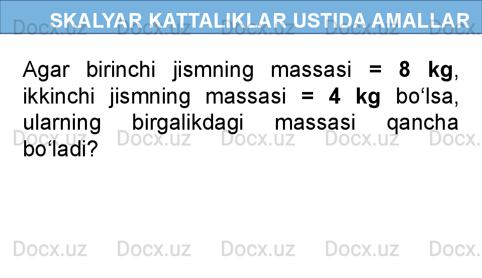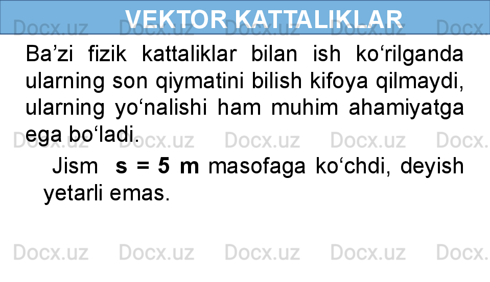 Skalyar va vektor kattaliklar hamda ular ustida amallar
