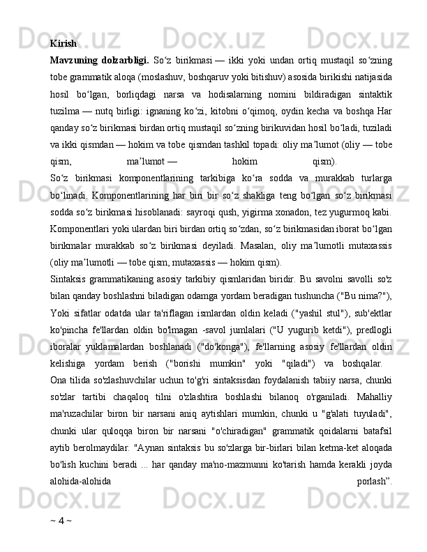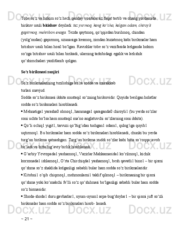 So'z birikmasi qoliplarining nutqiy kengayishi va birikma zanjiri