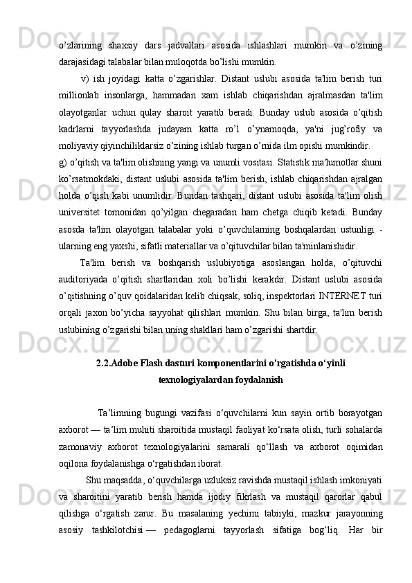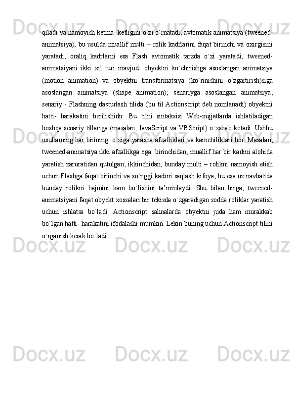 1.1.Adobe Flash dasturi va uning animatsiya yaratishdagi qulayliklarini o’qitishda zamonaviy ta’lim metodlaridan foydalanish