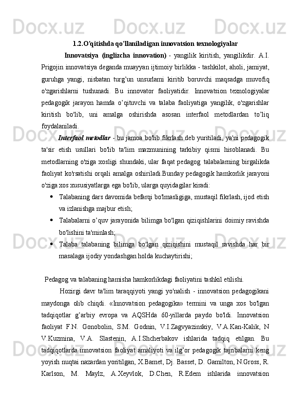 1.2.O'qitishda qo'llaniladigan innovatsion texnologiyalar