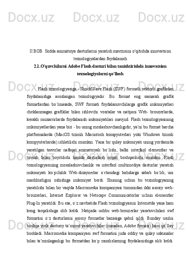 2.1.O'quvchilarni Adobe Flash dasturi bilan tanishtirishda innovatsion texnologiyalarni qo'llash