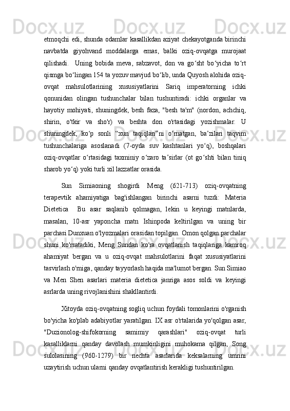 1.2. Xitoyning oziq-ovqat terapiyasi.