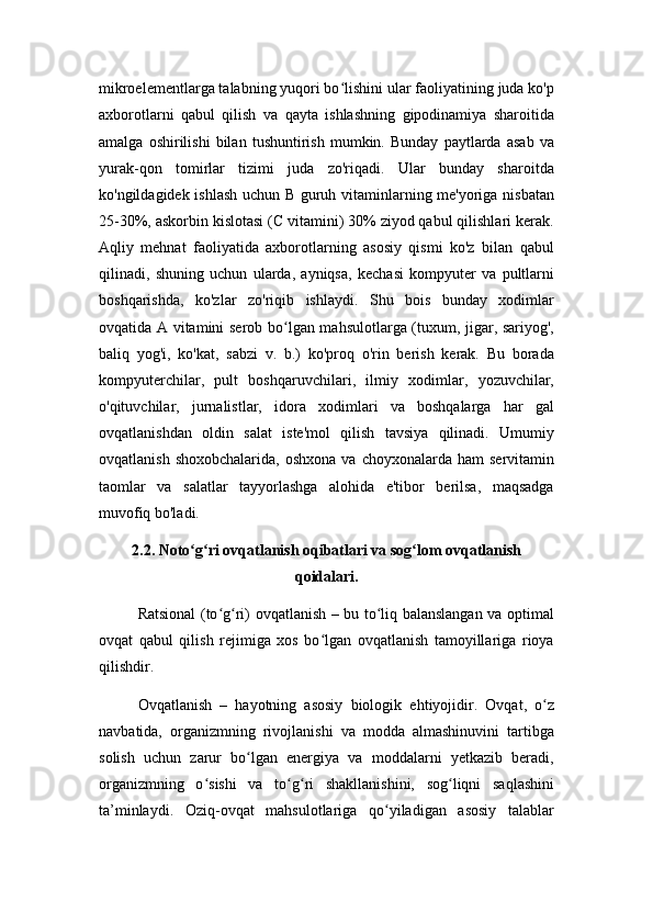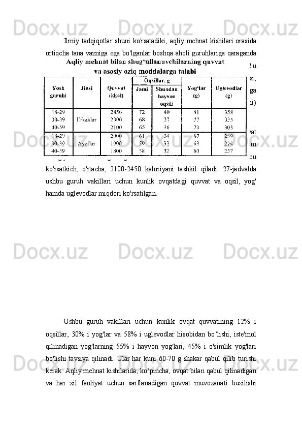 2.1. Aqliy mehnat kishilarining oqilona ovqatlanishi.