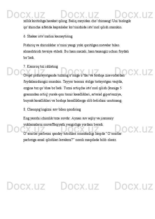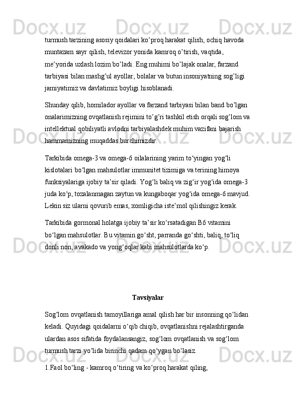 2.2. Notoʻgʻri ovqatlanish oqibatlari va sogʻlom ovqatlanish qoidalari.