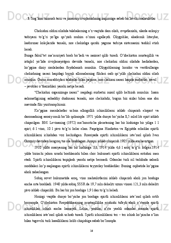 vino   berilmagan.   U   zamonning   yuqori   tarbiyali   kishilarni   mastlikni   zarar   haqida