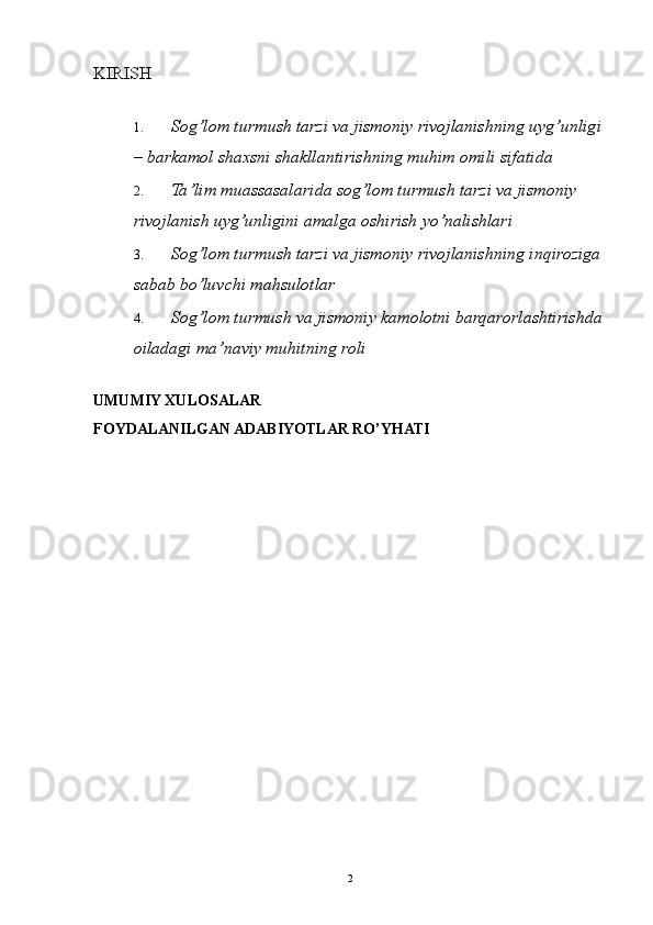 1. Sog’lom turmush tarzi va jismoniy rivojlanishning uyg’unligi – barkamol shaxsni