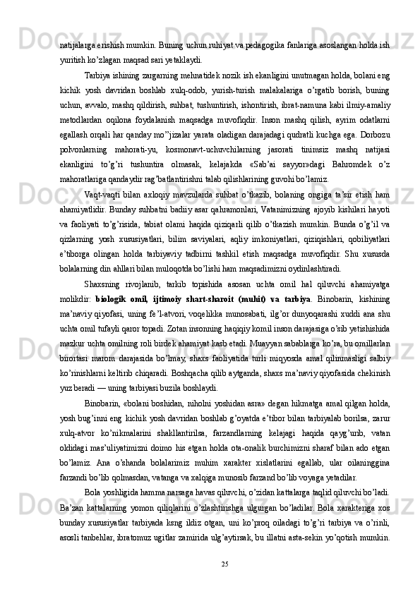 qatorda   milliy   va   umuminsoniy   qadriyatlarga   sadoqatli   qilib   tarbiyalashda   muhim   o’rin   tutadi.