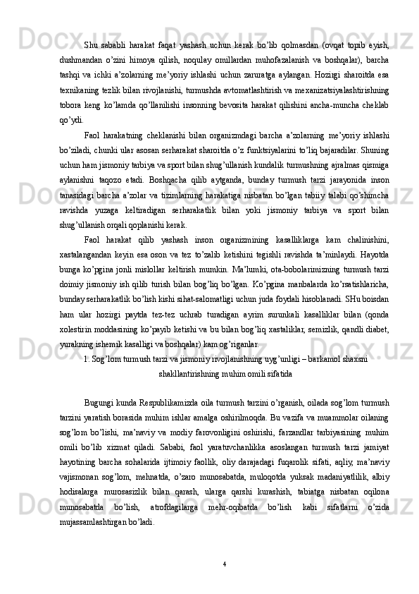 14 Shu   sababli   harakat   faqat   yashash   uchun   kerak   bo’lib   qolmasdan   (ovqat   topib   eyish,