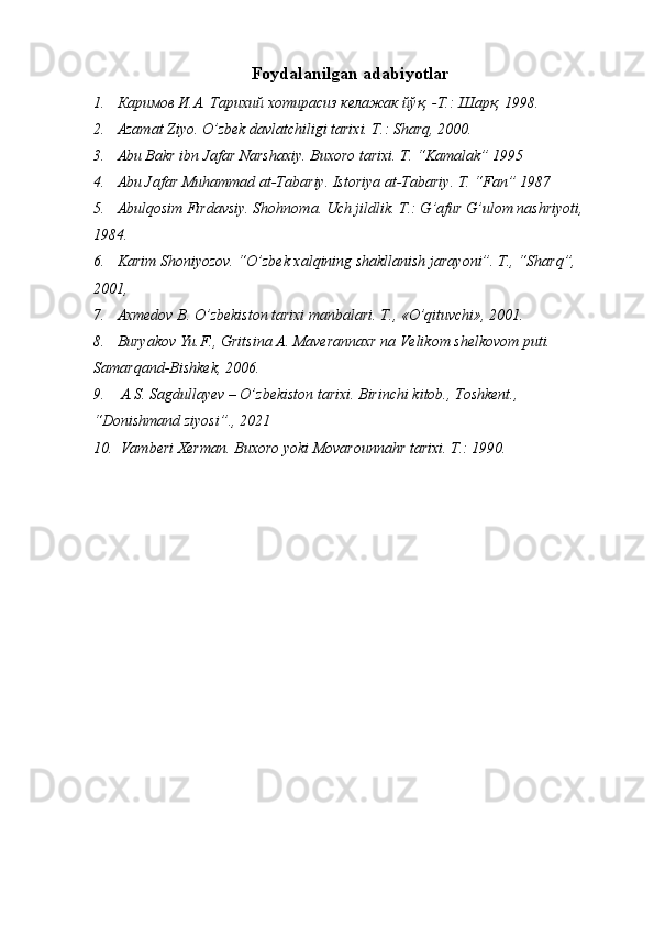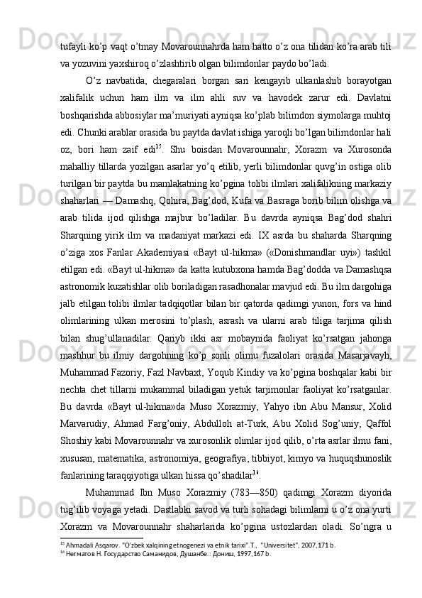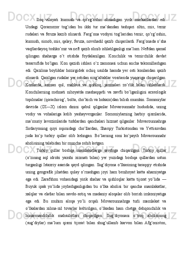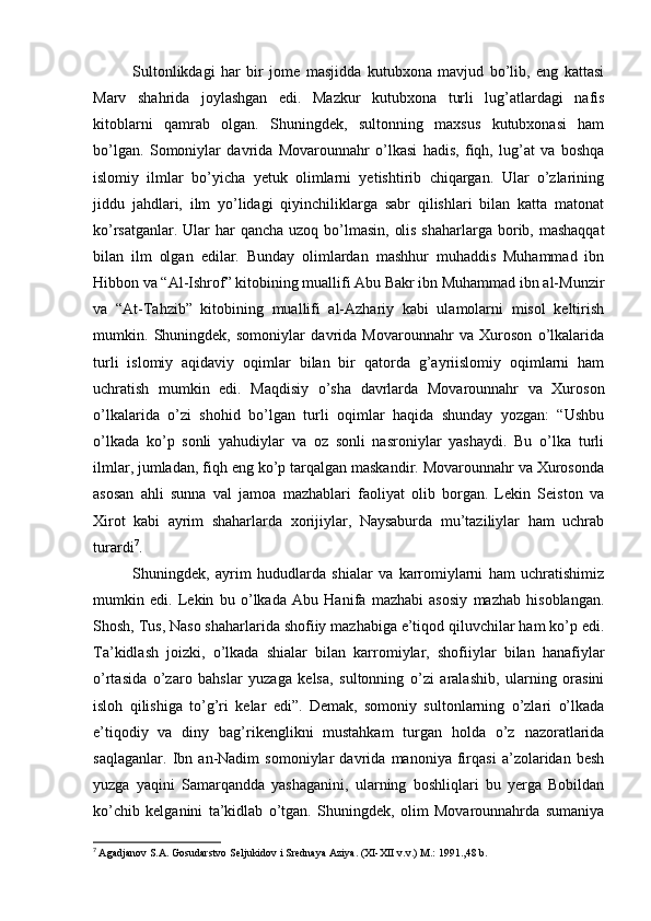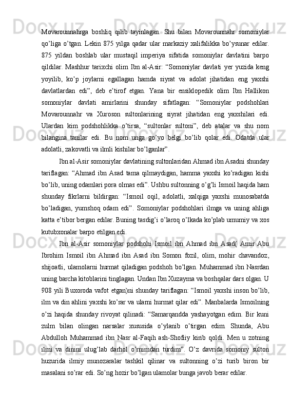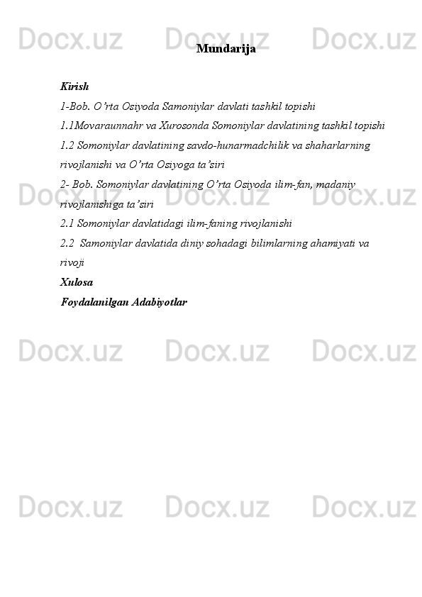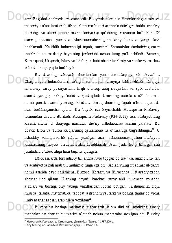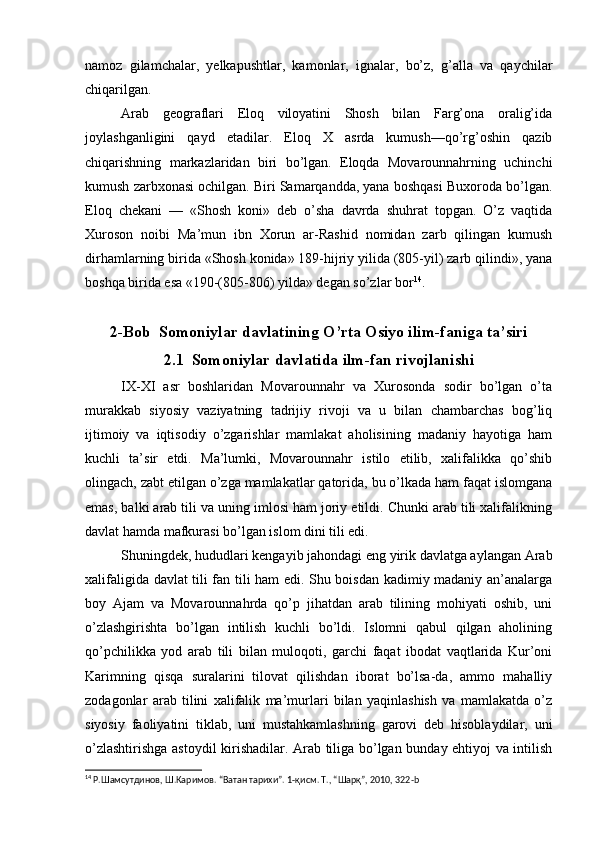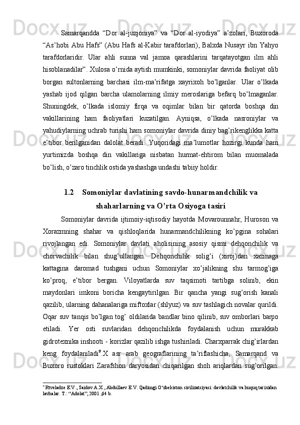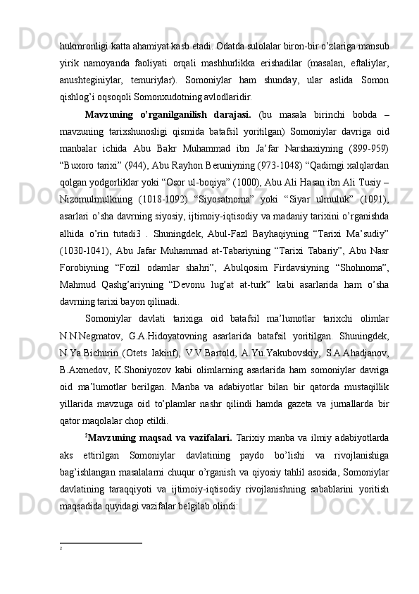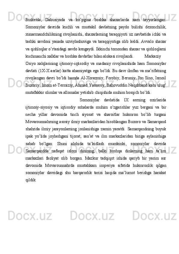 Somoniylar davlati va uning O’rta Osiyo tarixida tutgan o’rni