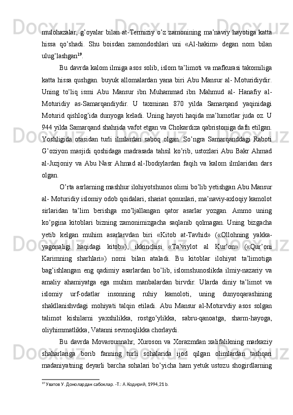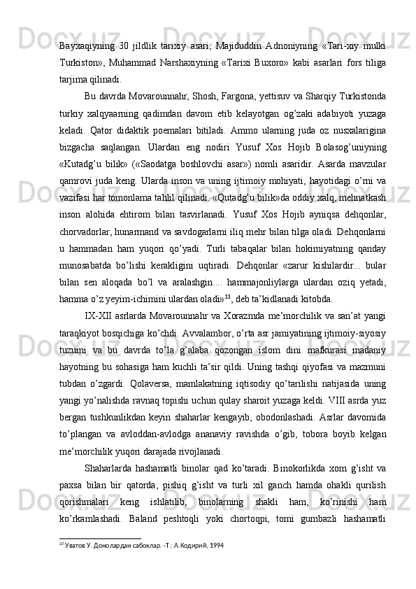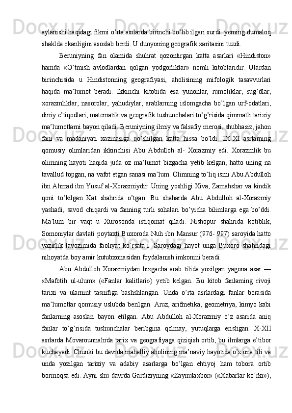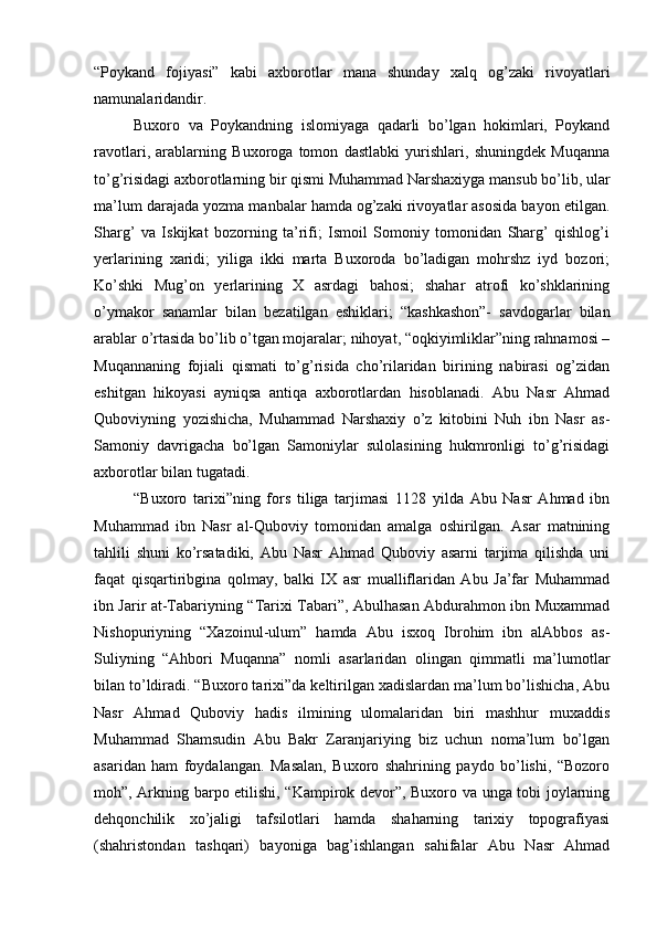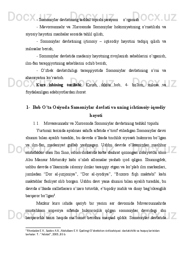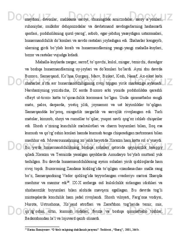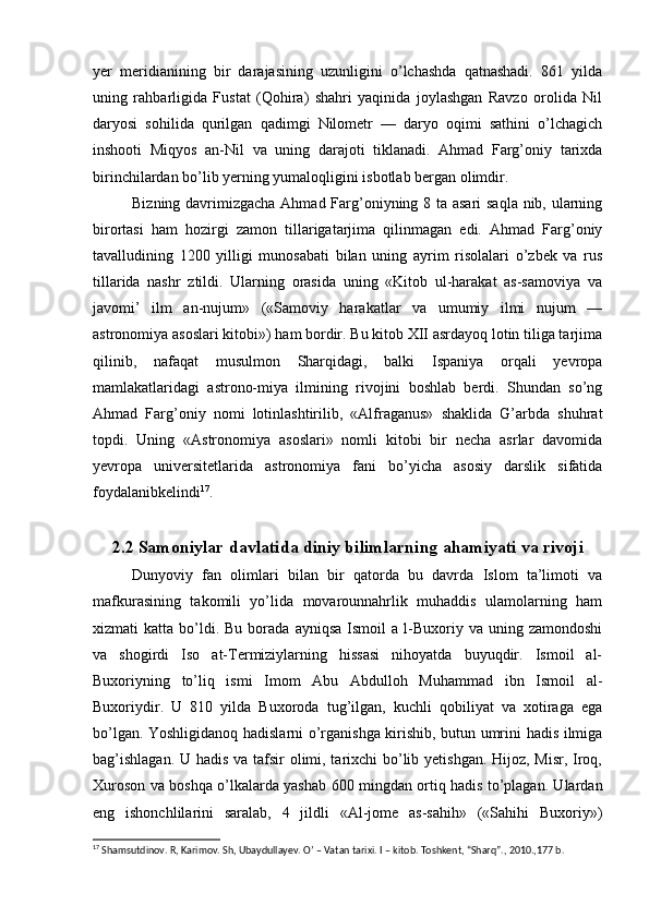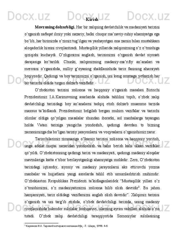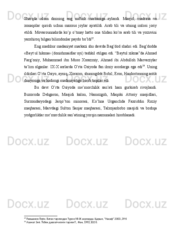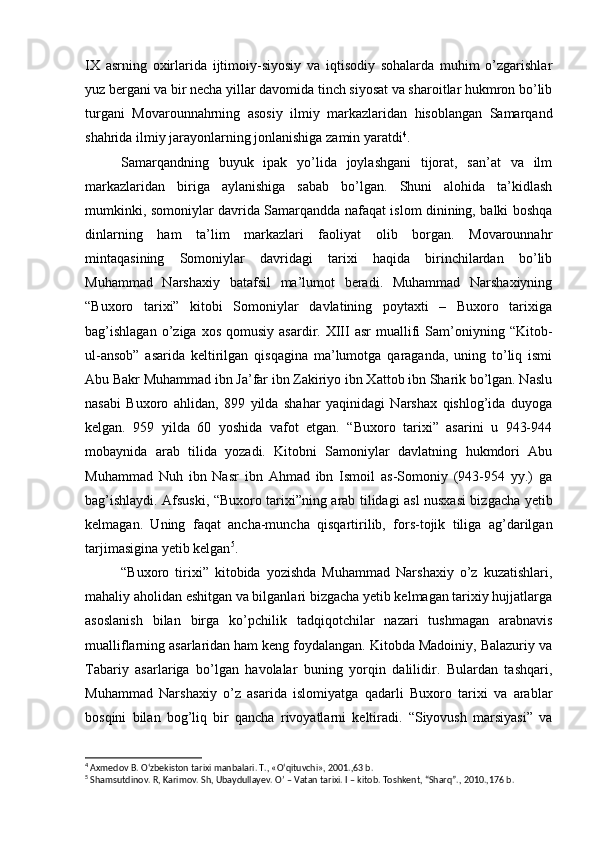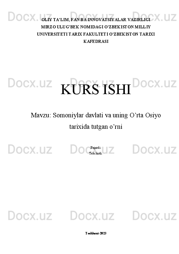 Somoniylar davlati va uning O’rta Osiyo tarixida tutgan o’rni