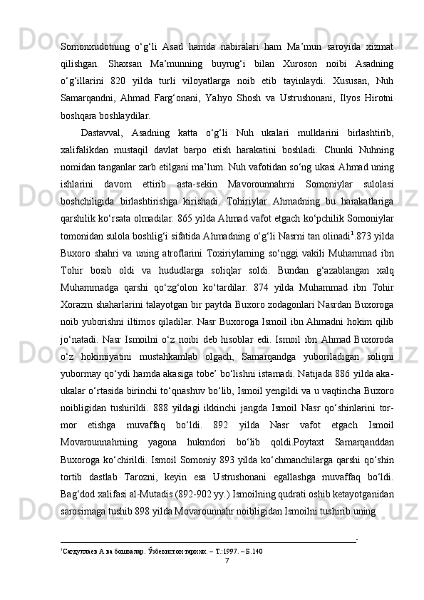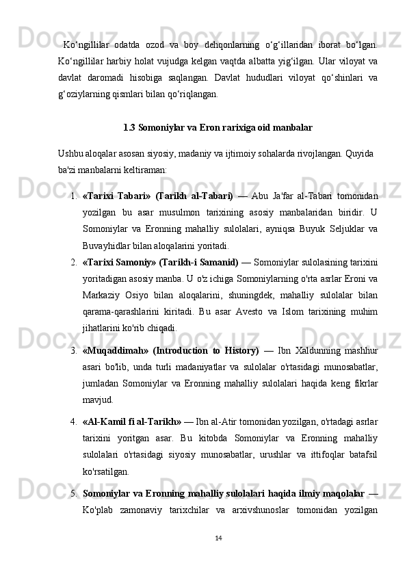 Somoniylar va Eronning mahalliy sulolalari orasidagi aloqalar tarixiga oid manbalar