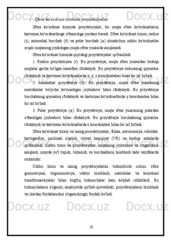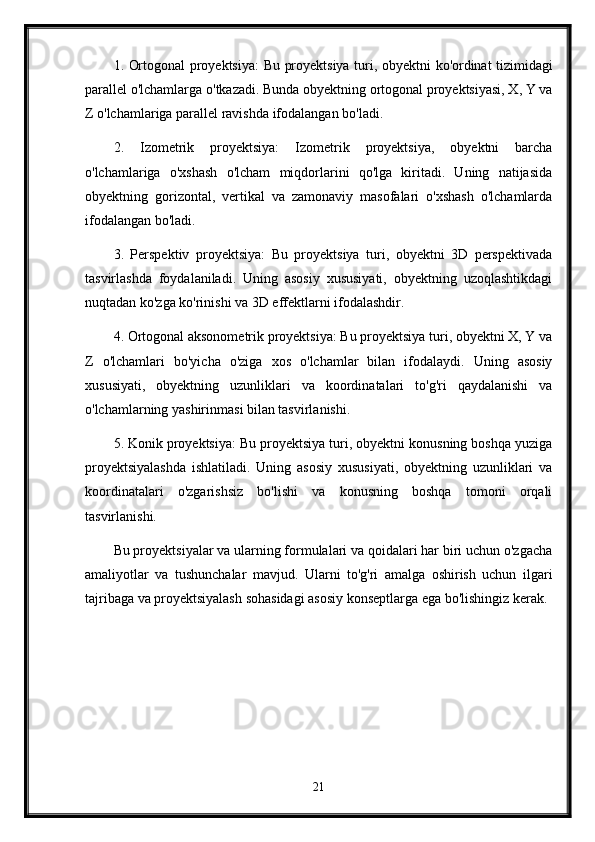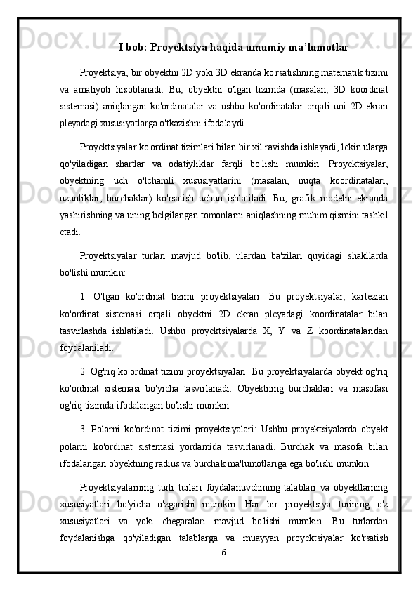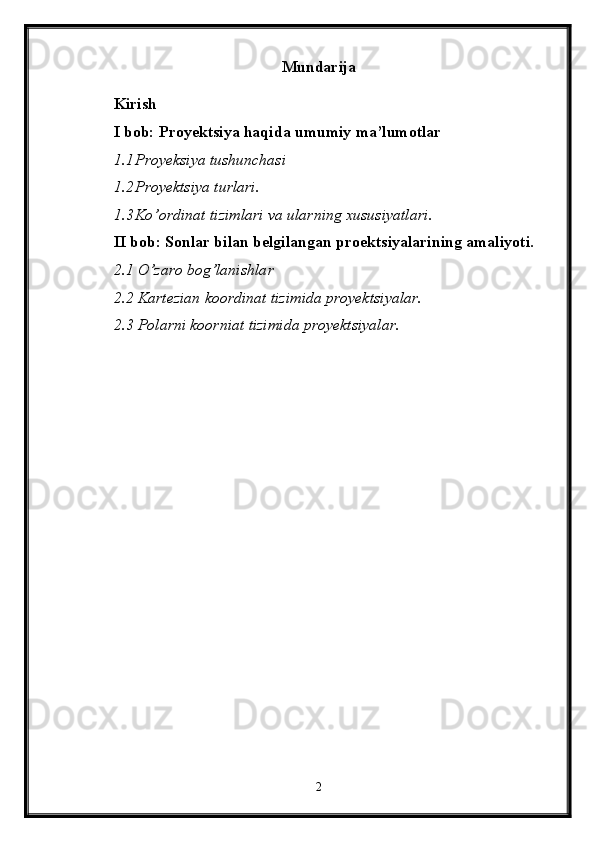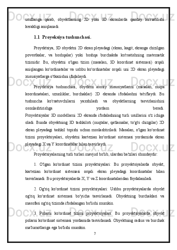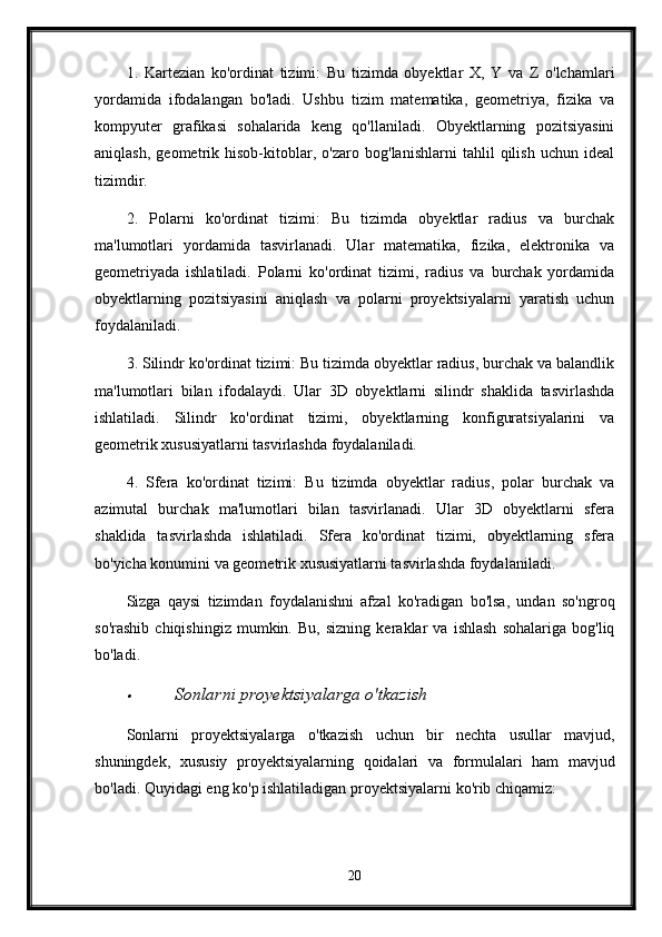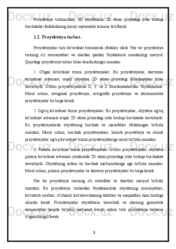 Sonlar bilan belgilangan proektsiyalar haqida ma'lumot