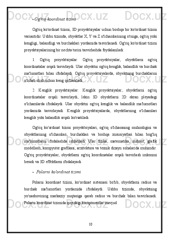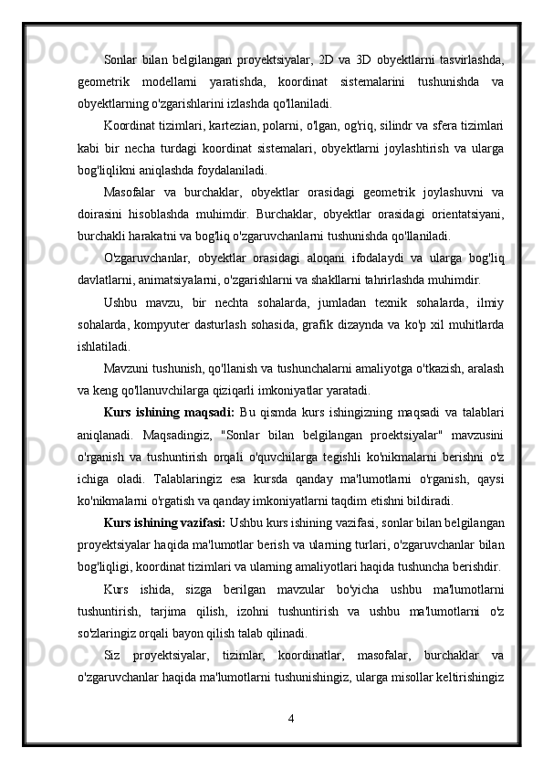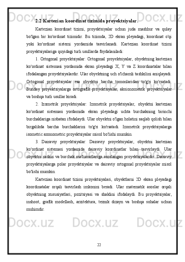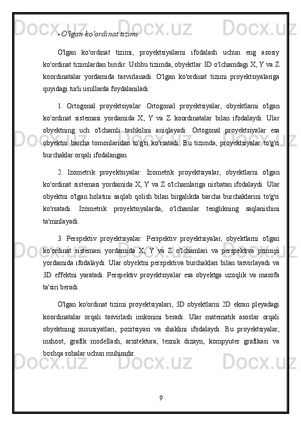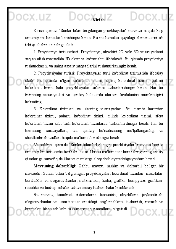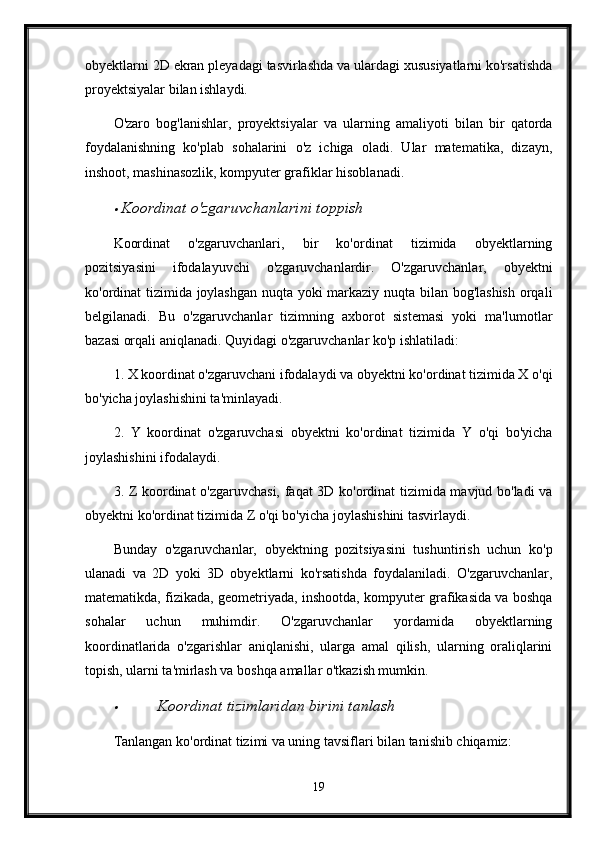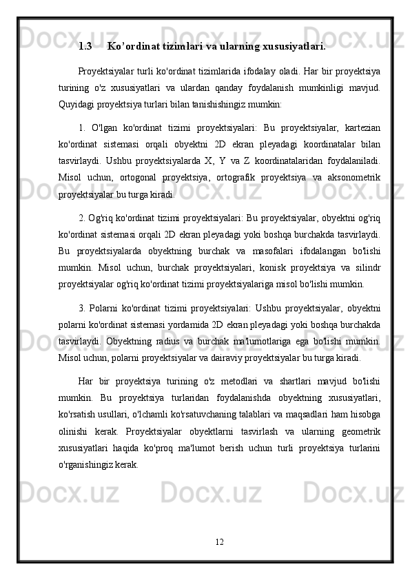 Sonlar bilan belgilangan proektsiyalar haqida ma'lumot