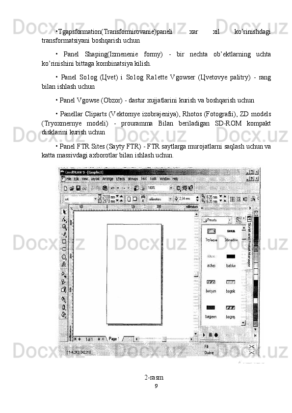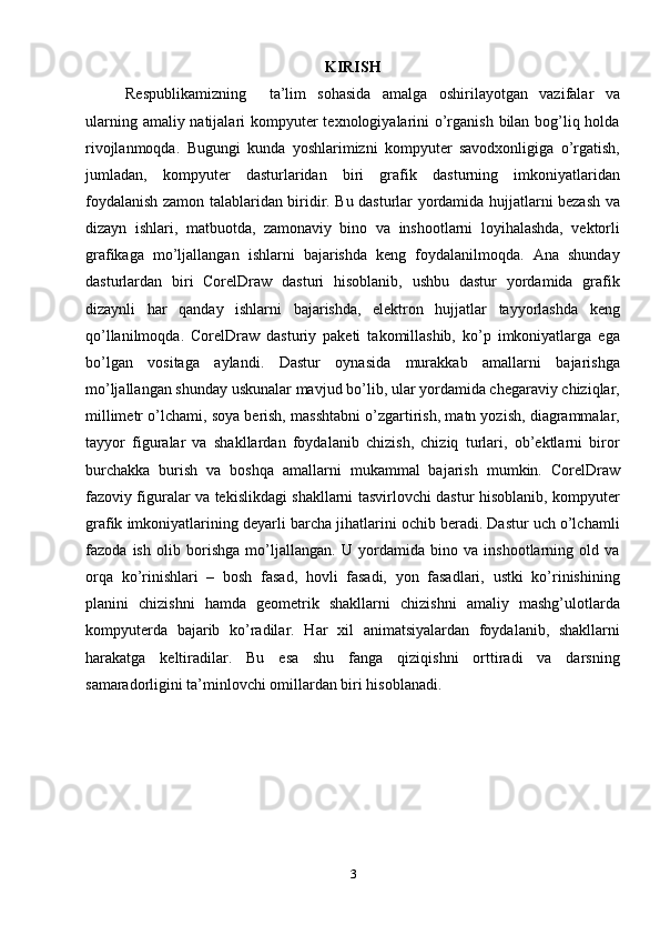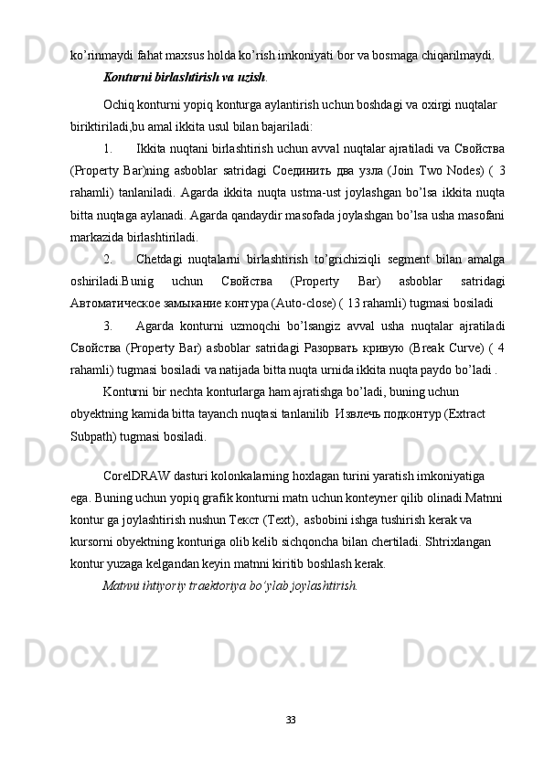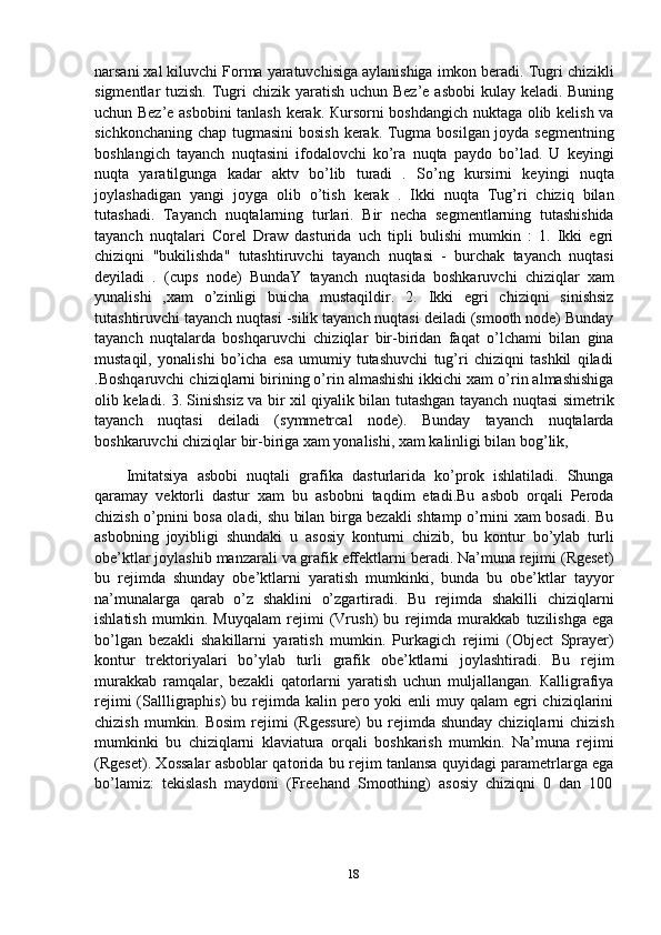 Сorel draw dasturida to'g'ri va egri chiziqlar