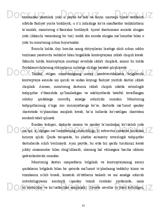 xususiyatlarni   ajratib   ko‘rsatish   mumkin.   Xususan,   sotsiologik   monitoringni