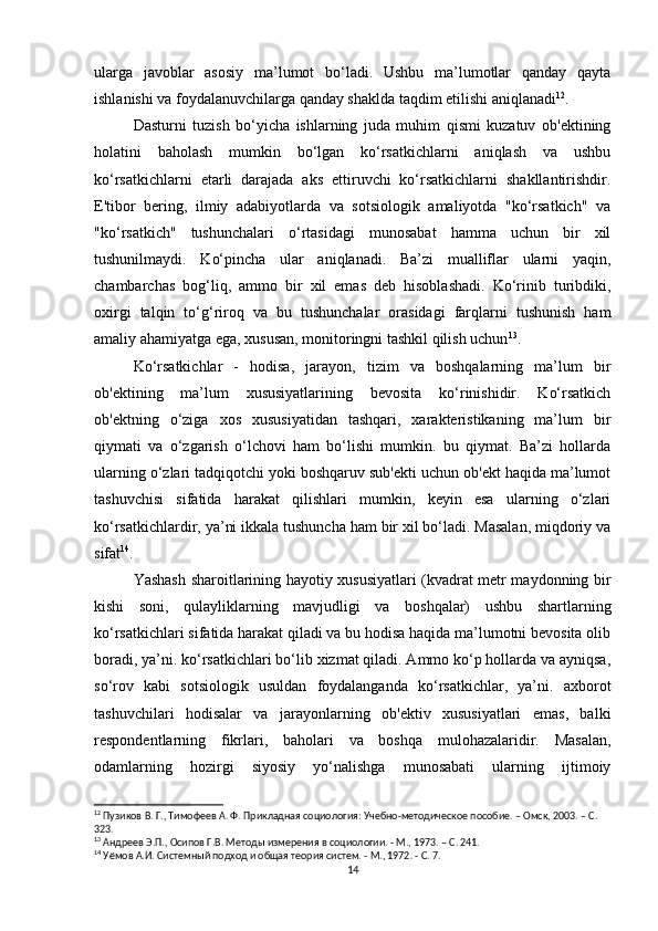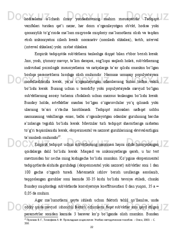 gipotezalarni   sinab   ko‘rishga   imkon   bermaydi.   Olingan   birlamchi   sotsiologik