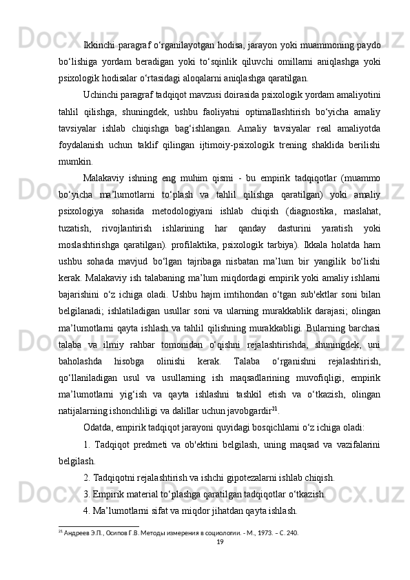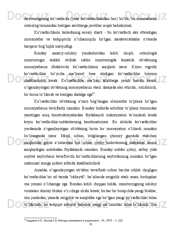 Андреев Э.П., Осипов Г.В. Методы измерения в социологии. - М., 1973. – C. 240.