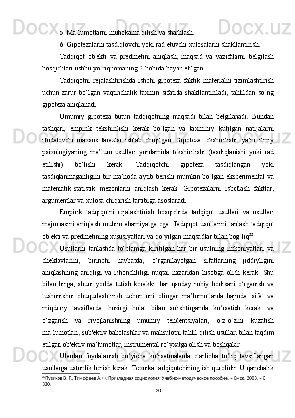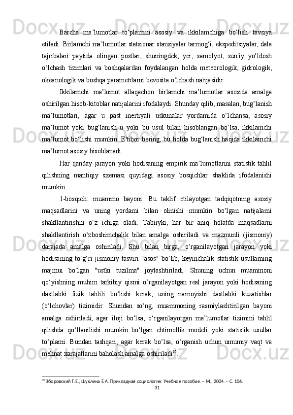 ta’kidlangan   (dala   ma’lumotlarini   to‘plash;   namuna;   axborotni   qayta   ishlash;