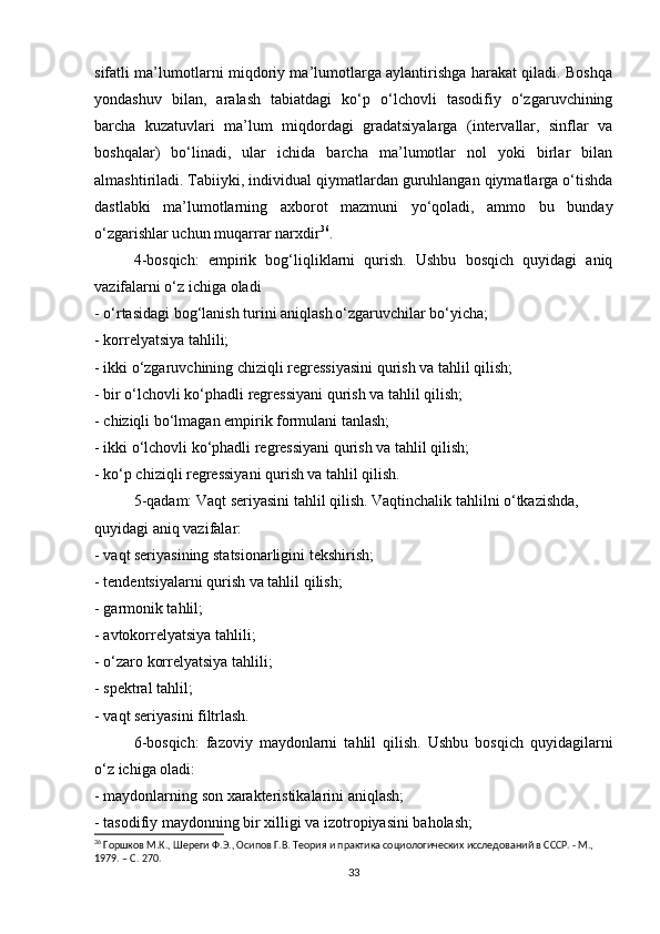 4. Ma’lumotlarni sifat va miqdor jihatdan qayta ishlash.