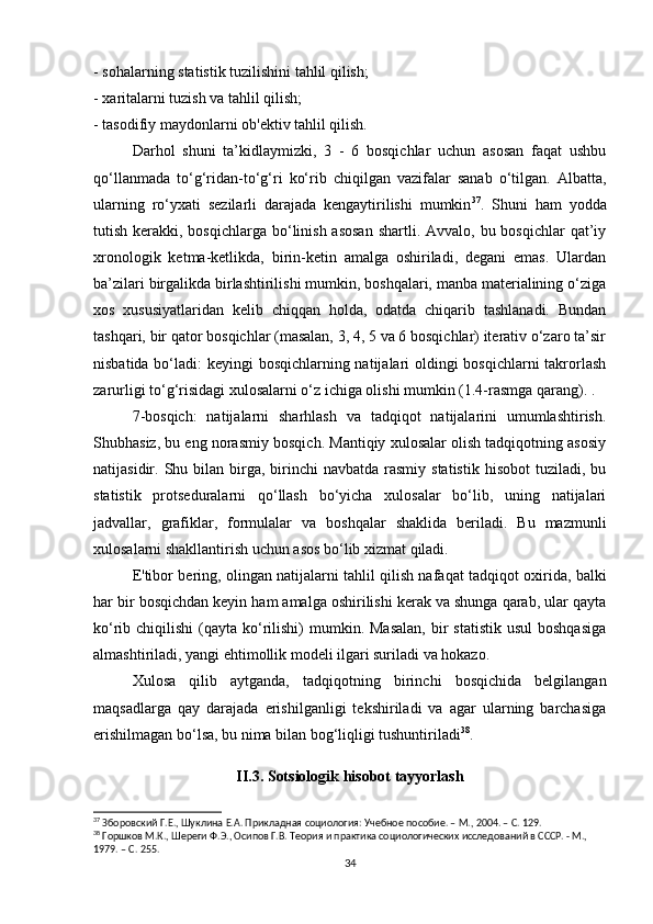 birinchidan,   sotsiologik   axborotni   tahlil   qilish   jarayonining   bosqichlarini