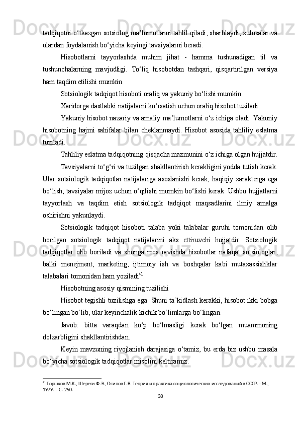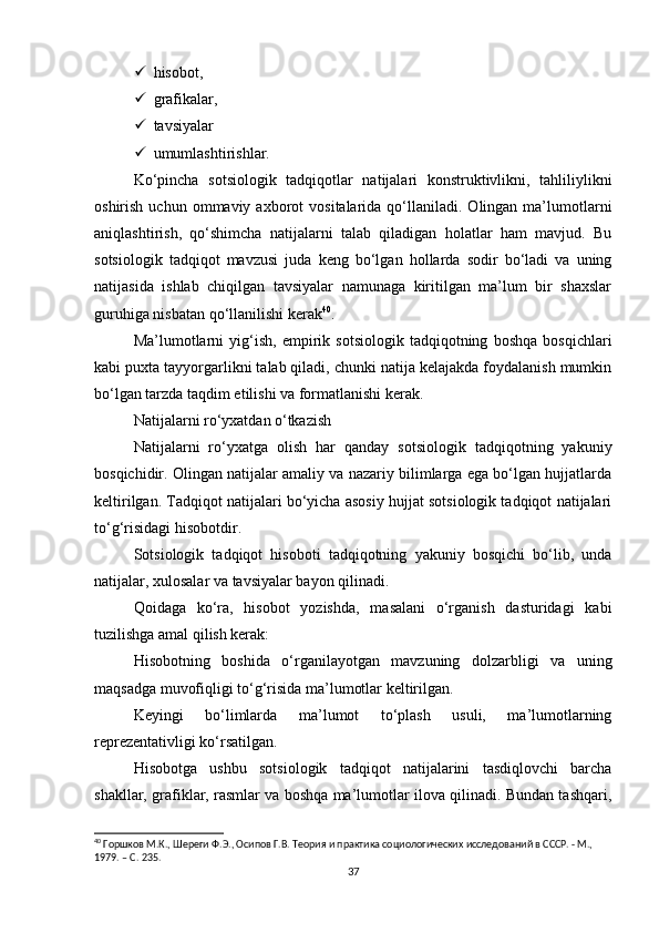 Tadqiqot   natijalari   haqida   hisobot.   Bu   sotsiologik   tadqiqotlar   natijalarini