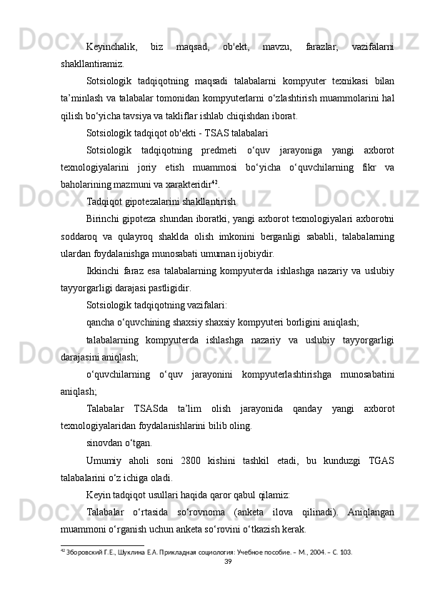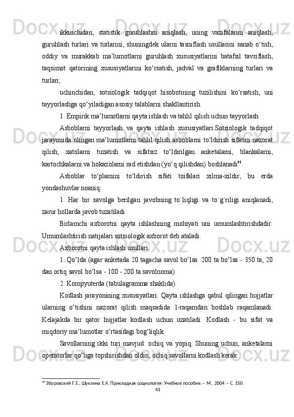 Зборовский Г.Е., Шуклина Е.А. Прикладная социология: Учебное пособие. – М., 2004. – C. 136.