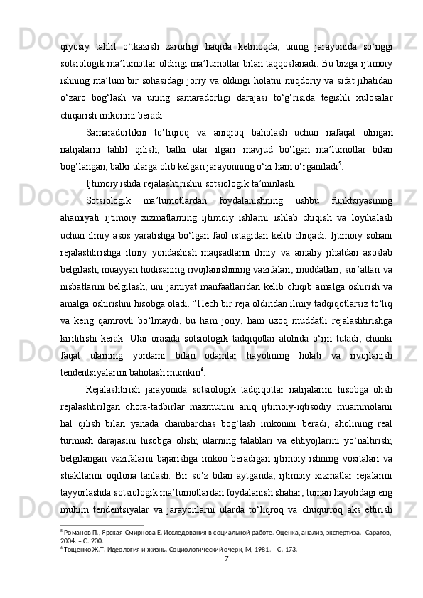 Nihoyat,   beshinchidan,   ijtimoiy   soha   xodimlarini   sotsiologik   tadqiqotlarni