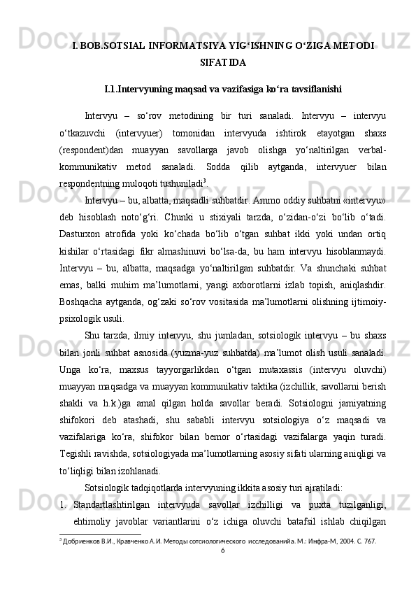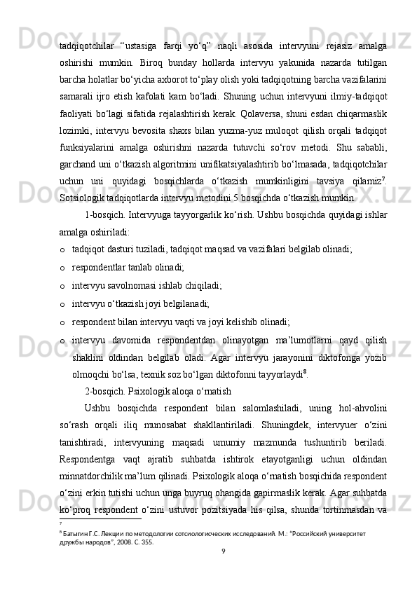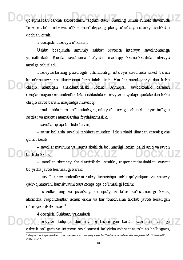 yo‘naltiriladi.   Bunda   savolnoma   bo‘yicha   mantiqiy   ketma-ketlikda   intervyu