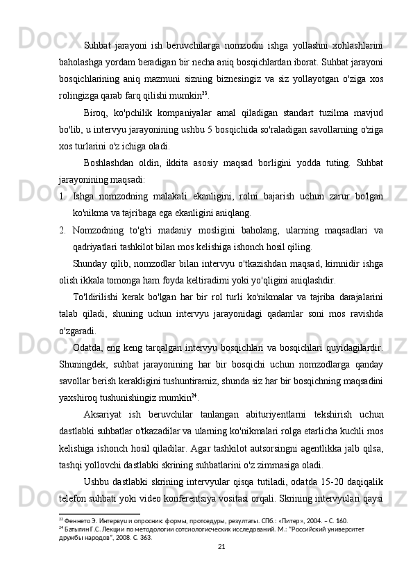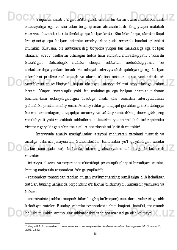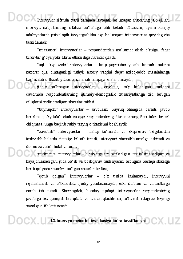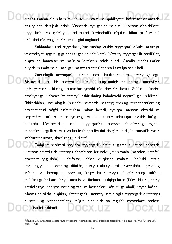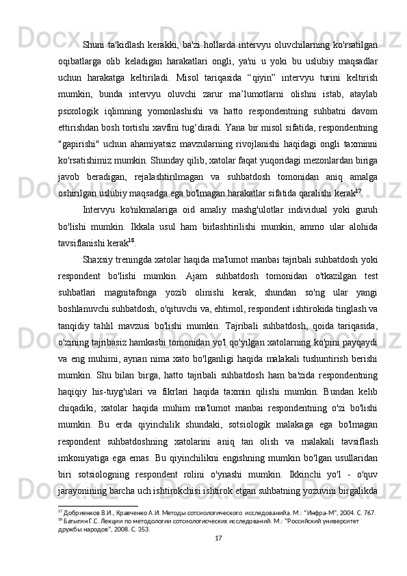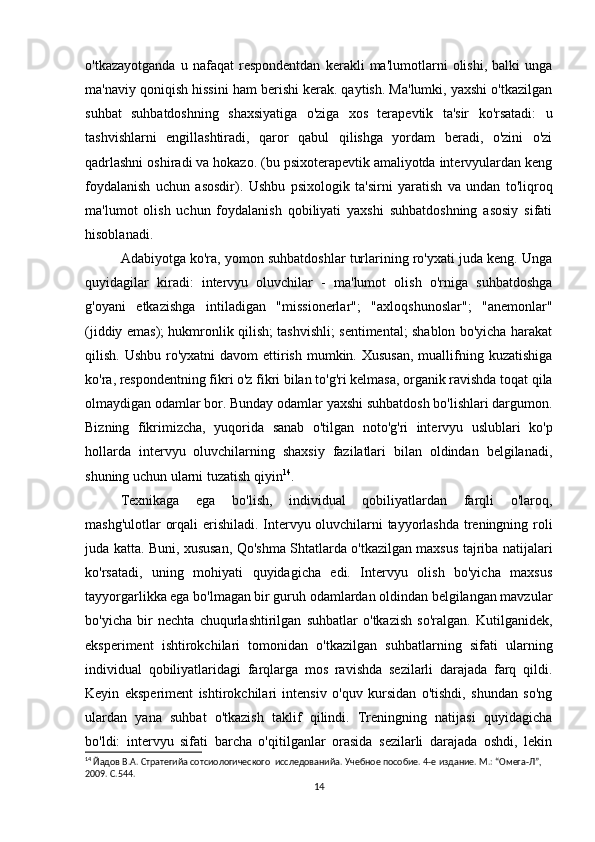 zimmasiga yuklagan o‘rta malakali suhbatdoshlarni kiritish mumkin 16